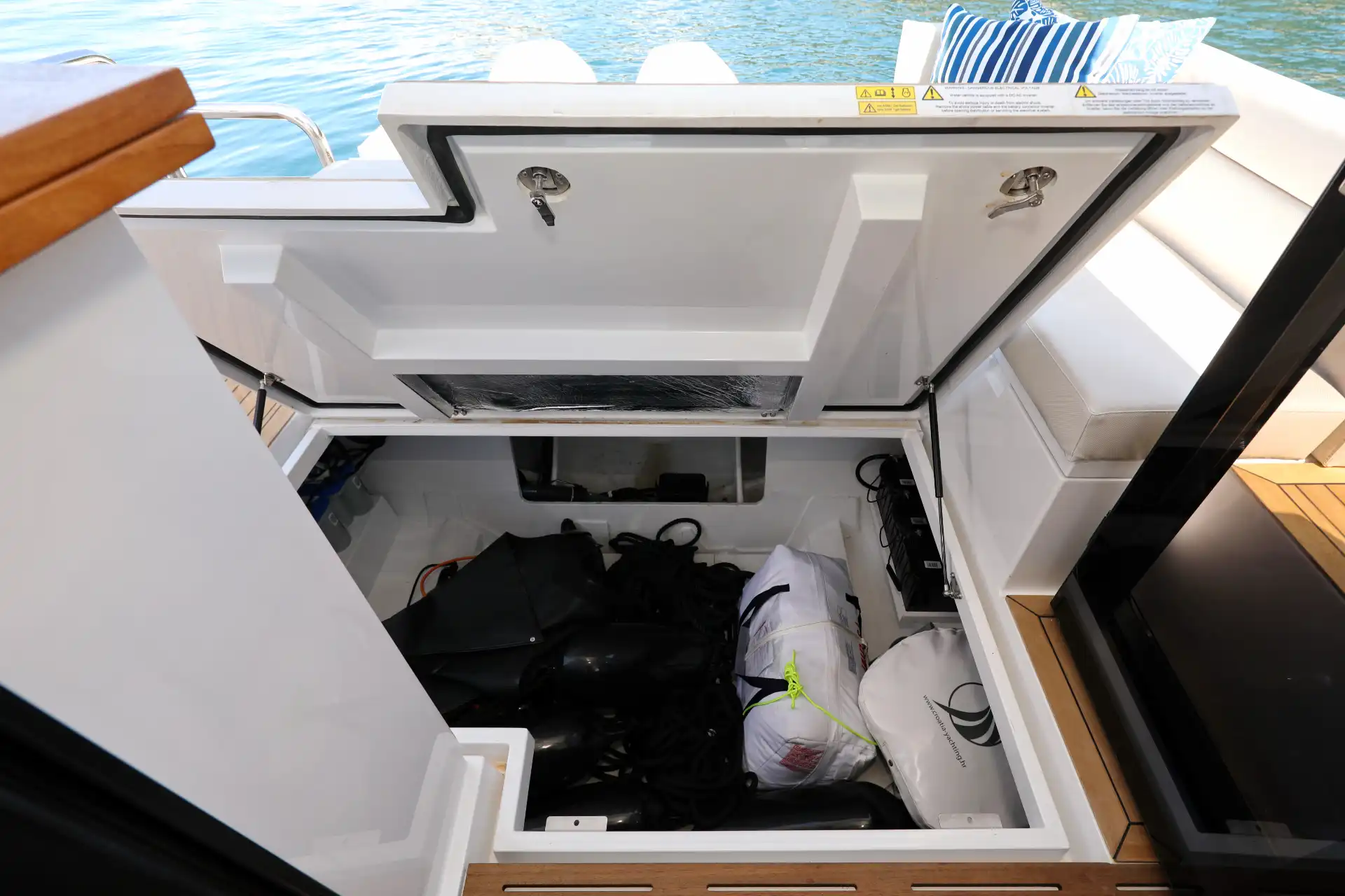 Mit der Möglichkeit statt den wartungsintensiven Volvo Penta Motoren, Außenbordtriebwerke mit bis zu 300 PS einzusetzen, hat man nicht nur die Höchstgeschwindigkeit von 32 auf 40 Knoten erhöht, man hat auch – ganz im Trend der Zeit – einen enormen Platzgewinn generiert.