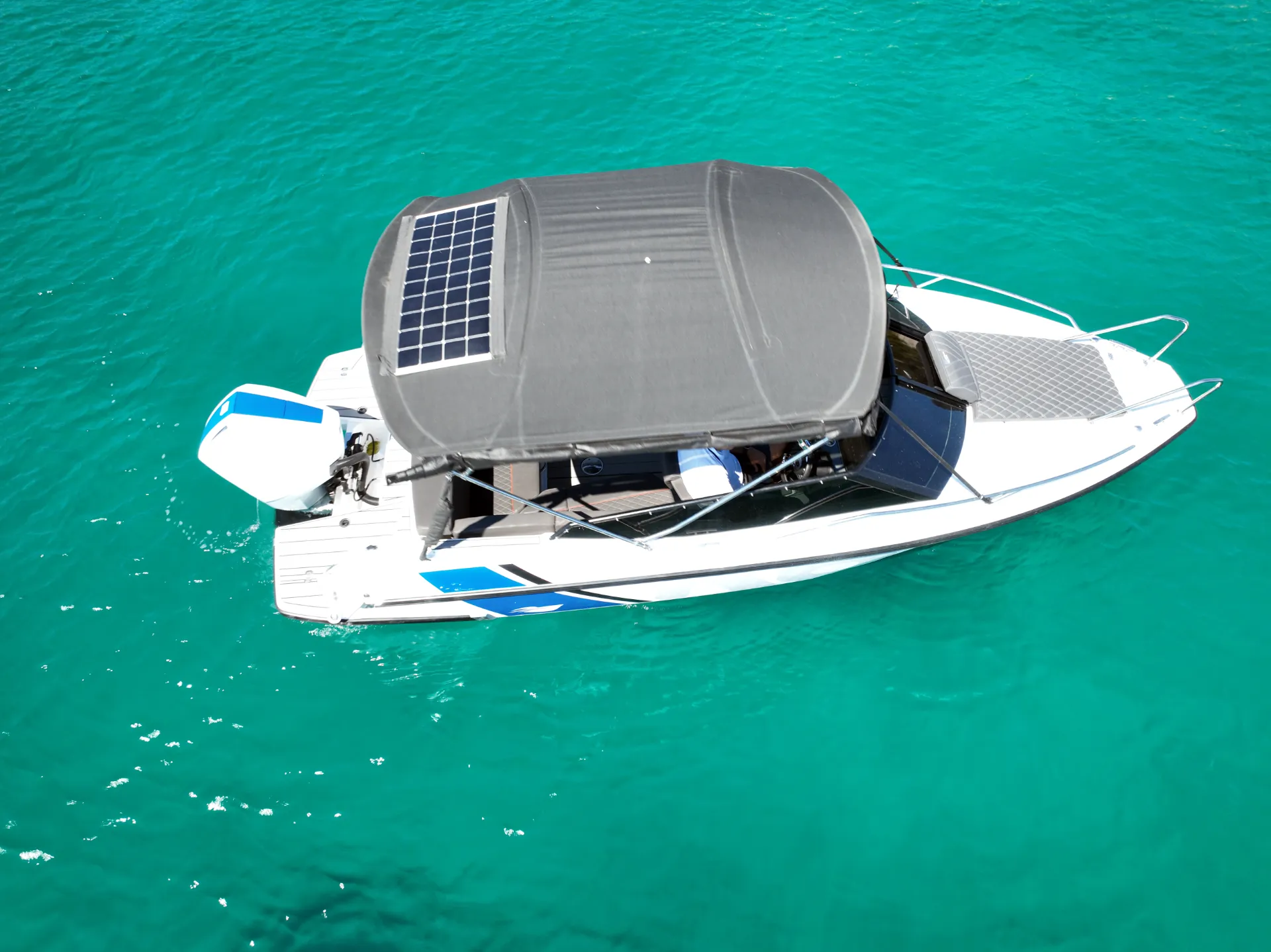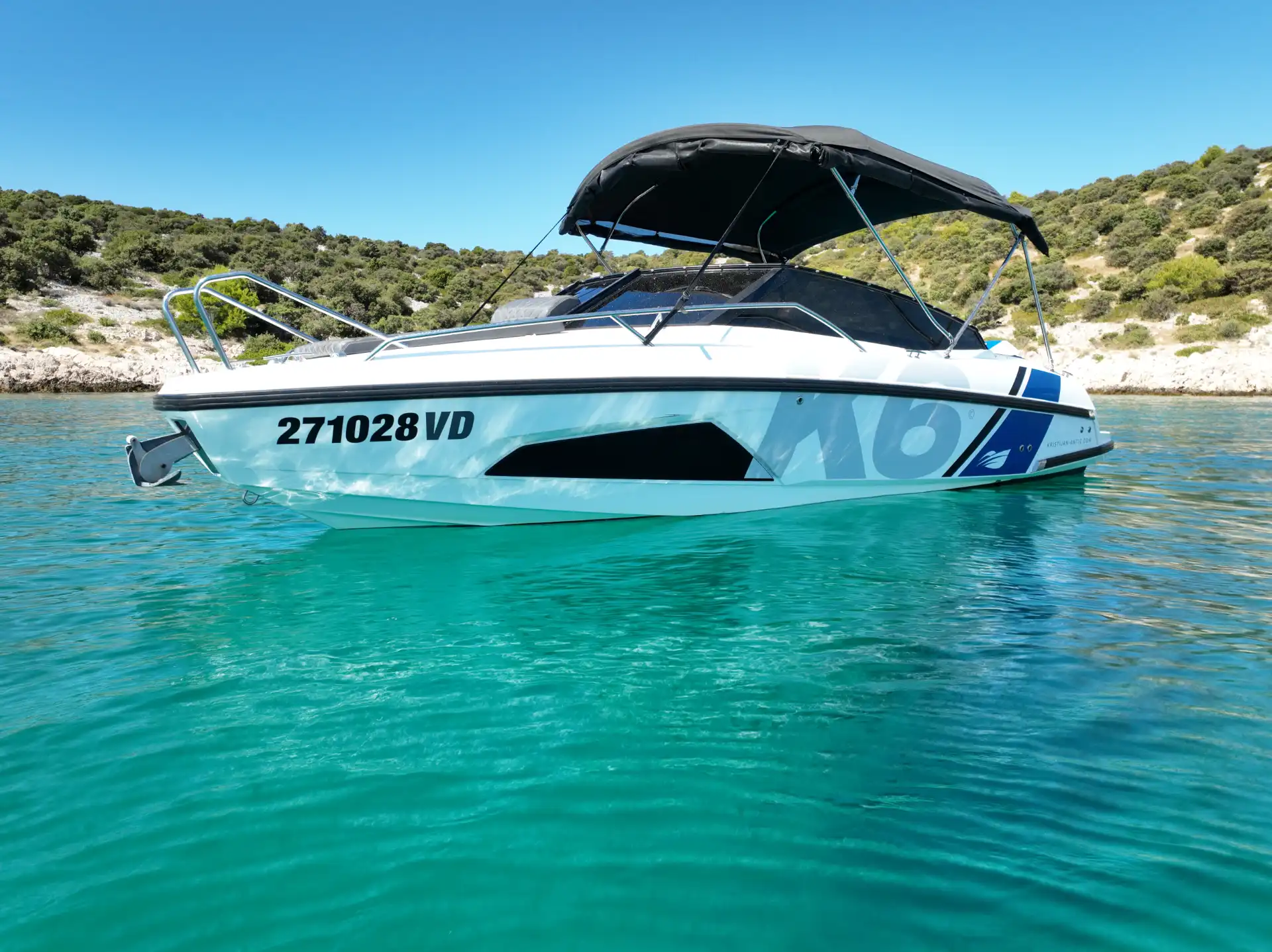 Diese Funktionen machen das Navigieren und Manövrieren zum Kinderspiel, sogar in engen Hafenanlagen, und gewährleisten ein stressfreies Erlebnis, selbst für weniger erfahrene Bootsfahrer. Die luxuriöse Ausstattung wird durch einen elektrischen Kühlschrank ergänzt, der für kühle Getränke sorgt, sowie durch maßgeschneiderte Beschattungselemente, die optimalen Sonnenschutz auf Deck gewährleisten.