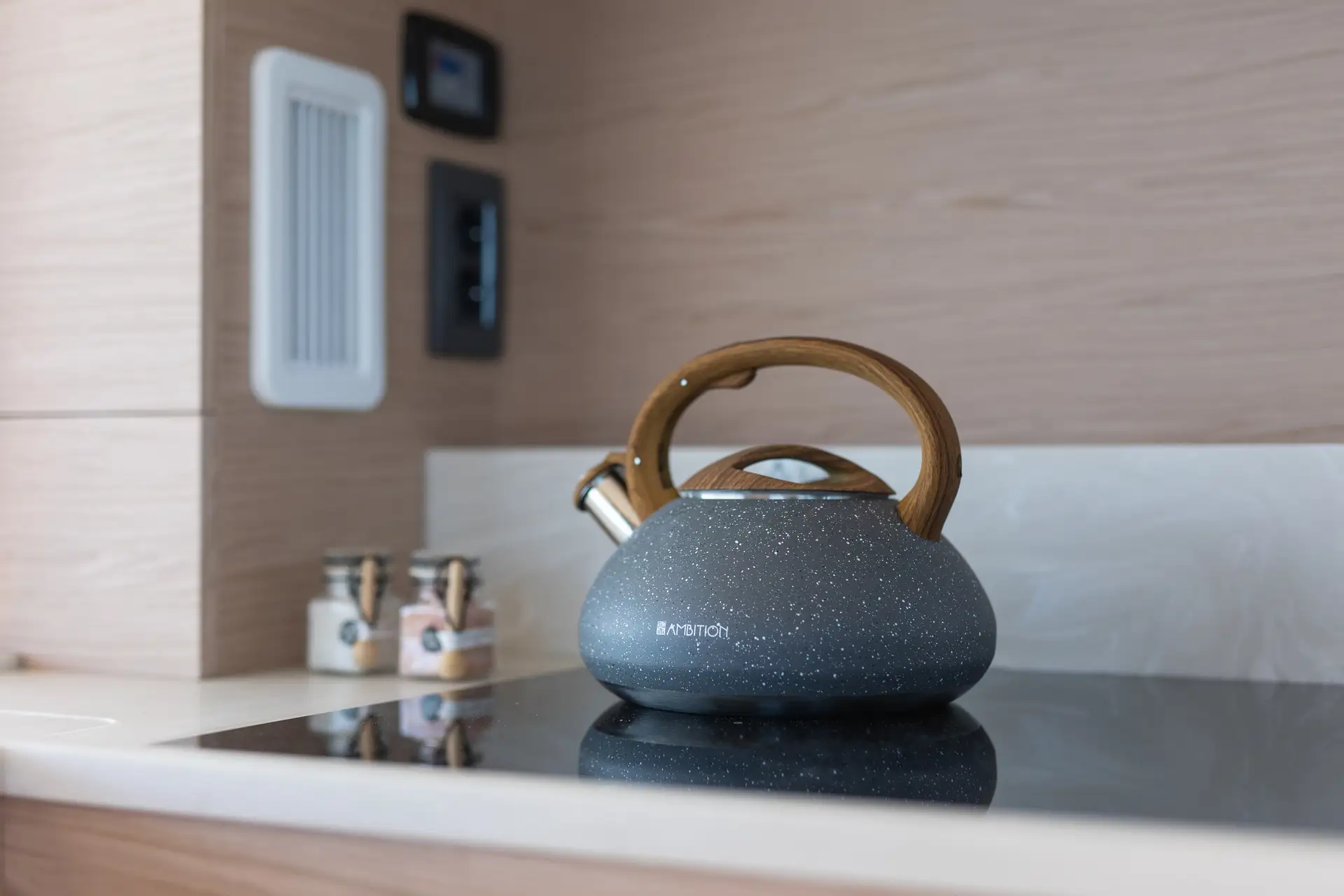 2 x Kühlschrank in Pantry, Gas Herd & Backofen, USB Anschlüsse in den Kabinen, Waschmaschine, Spülmaschine