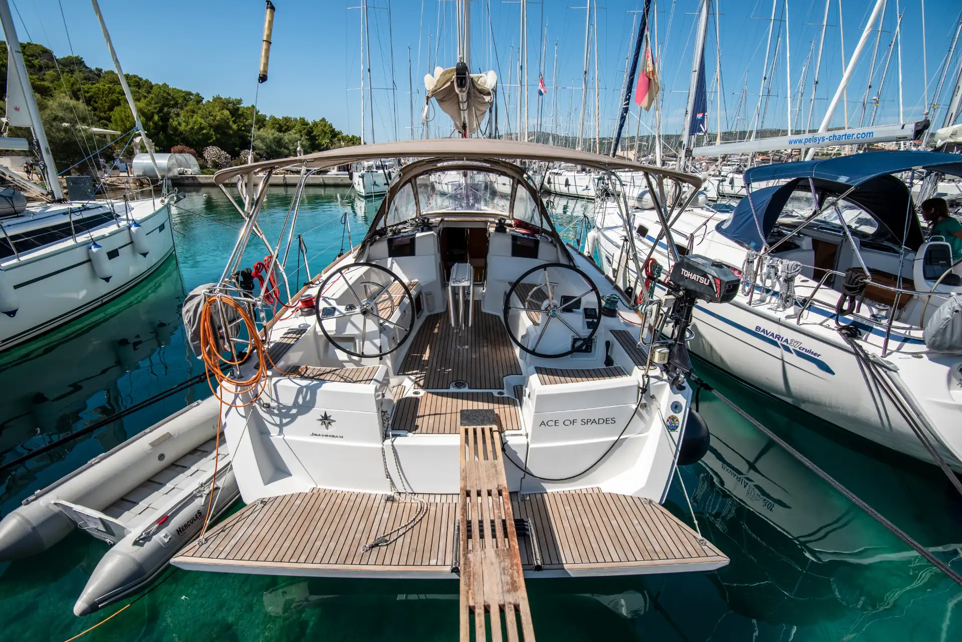 Das überzeugende Preis-Leistungsverhältnis der Sun Odyssey 389 – Ace of Spades, ihr integriertes Bugstrahlruder sowie ihr hervorragender Zustand machen sie zur perfekten Wahl beim Segelboot Mieten in Kroatien. Erleben Sie einen unbeschwerten und entspannten Segelurlaub an der Adria mit unserer erstklassigen Sun Odyssey 389!