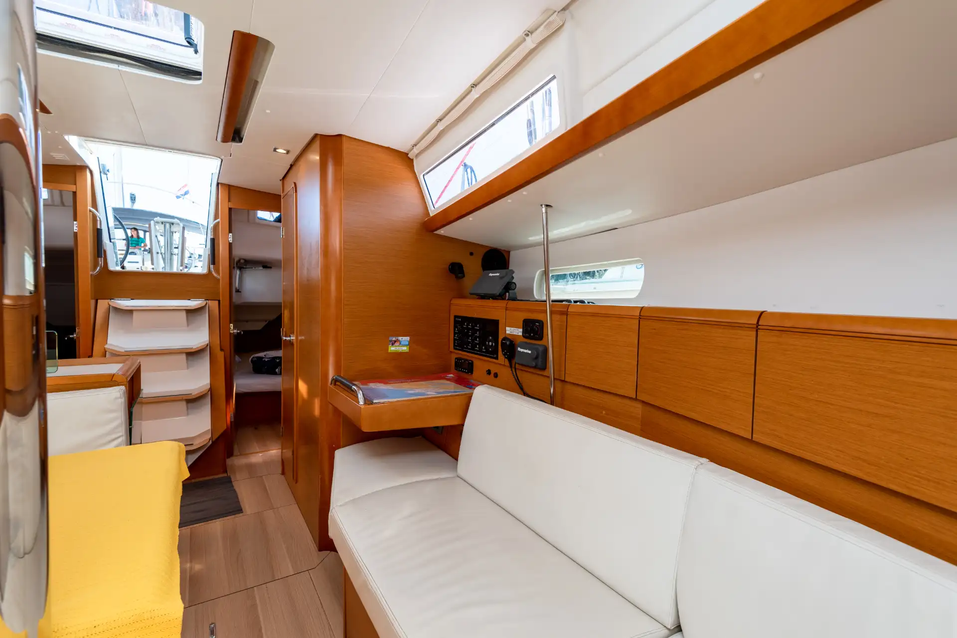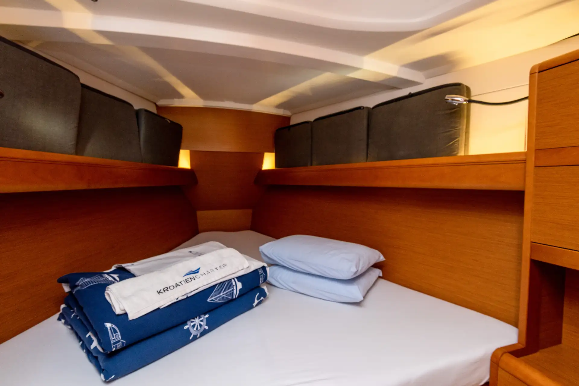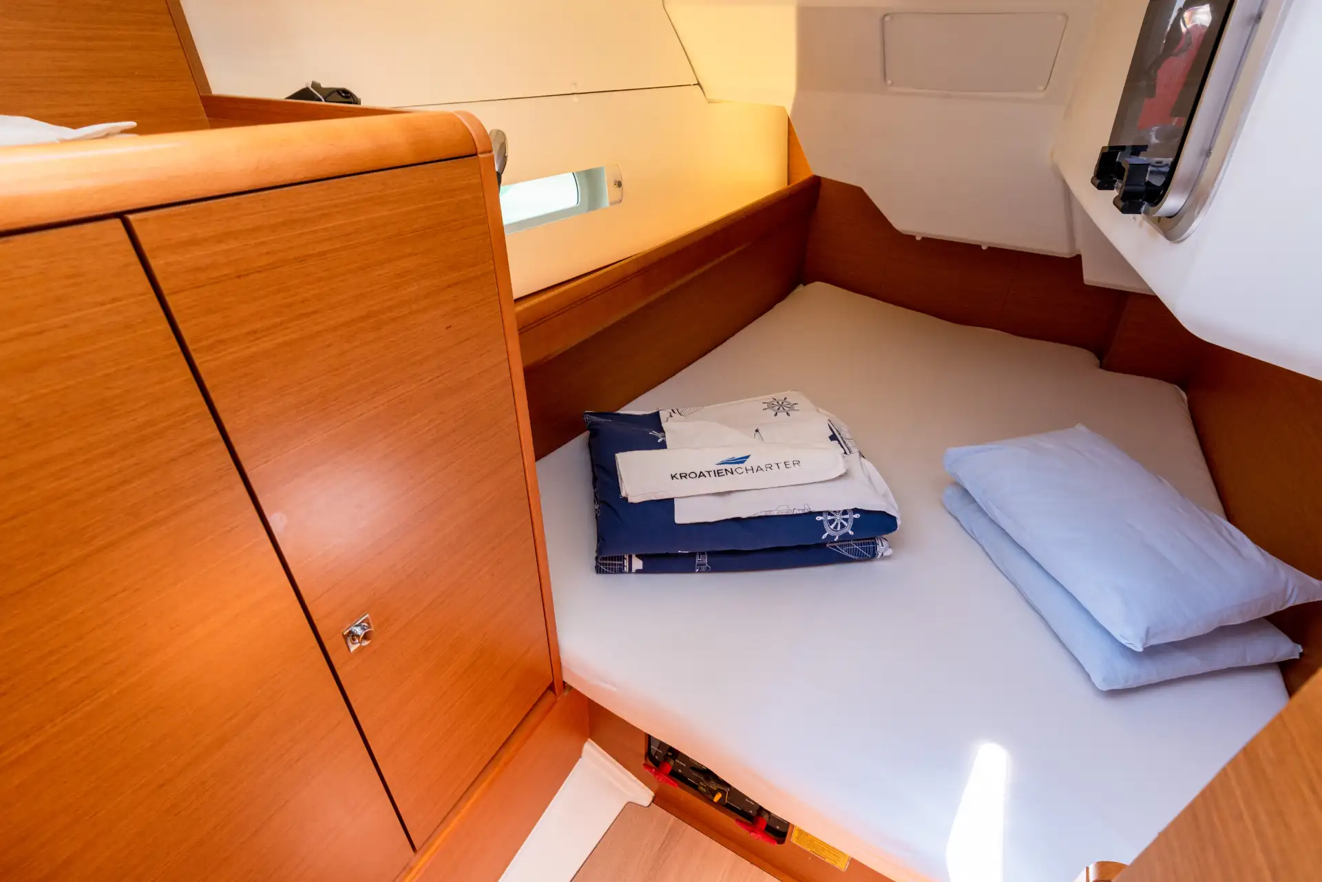 Dieses Segelboot stammt aus den renommierten Hallen der Jeanneau Werft, was sich in zahlreichen durchdachten Details widerspiegelt. Die Experten dieses französischen Herstellers haben auf knapp zwölf Metern Länge einen geräumigen Wohnbereich für sechs Personen geschaffen – eine wahre Meisterleistung beim Segelboot Mieten in Kroatien.
