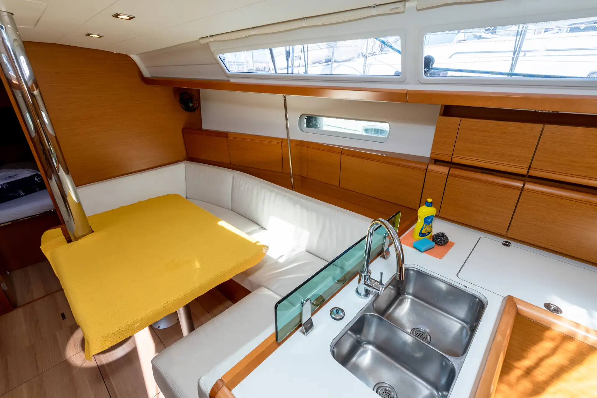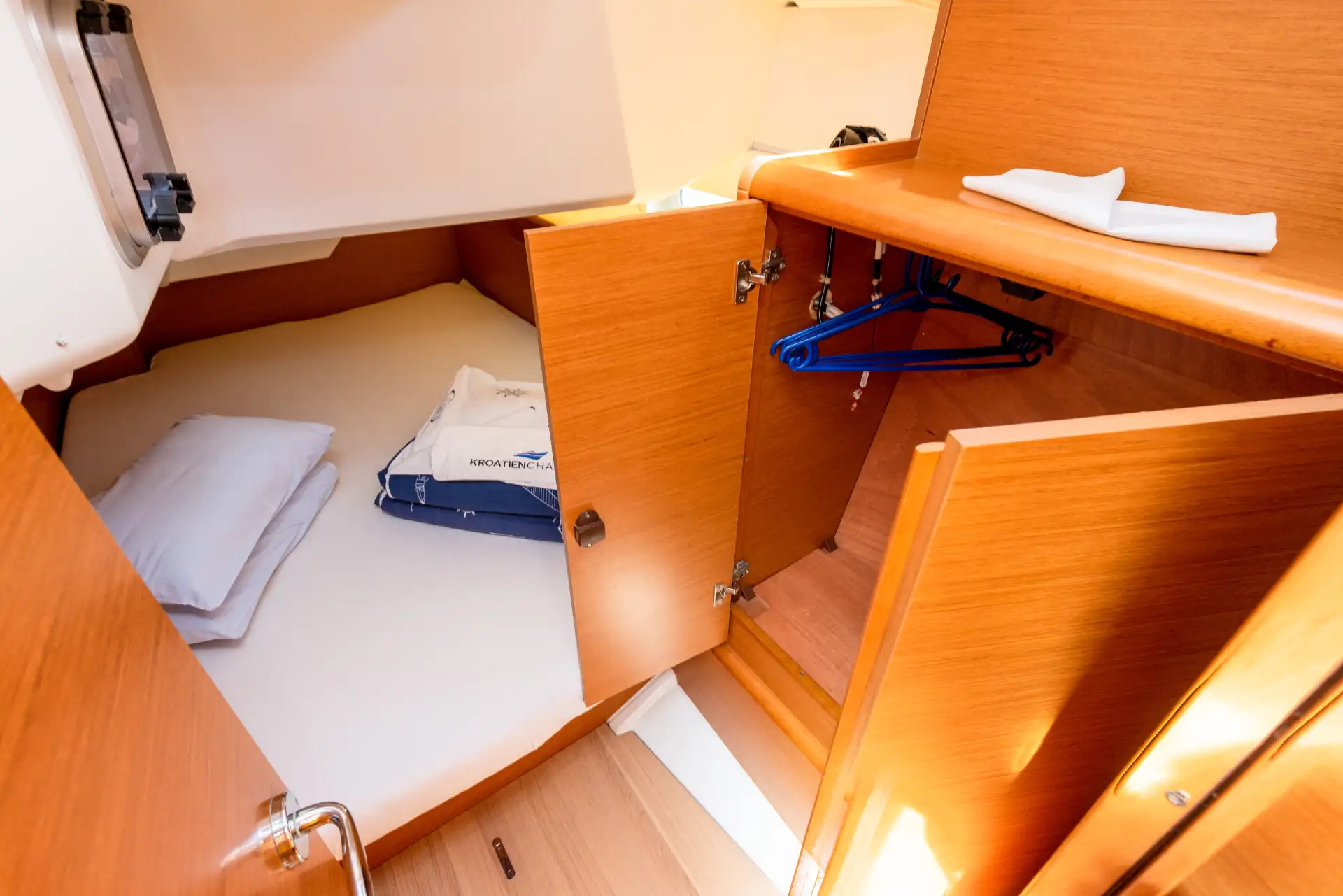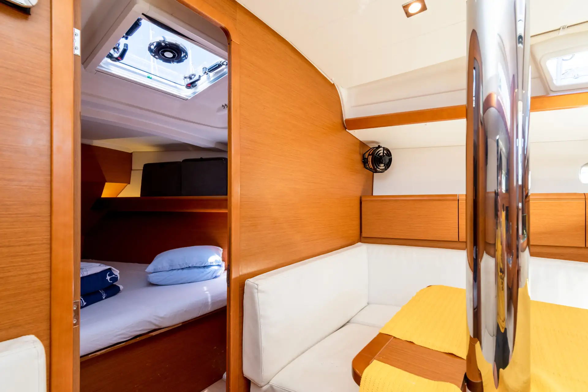 Dieses Segelboot stammt aus den renommierten Hallen der Jeanneau Werft, was sich in zahlreichen durchdachten Details widerspiegelt. Die Experten dieses französischen Herstellers haben auf knapp zwölf Metern Länge einen geräumigen Wohnbereich für sechs Personen geschaffen – eine wahre Meisterleistung beim Segelboot Mieten in Kroatien.