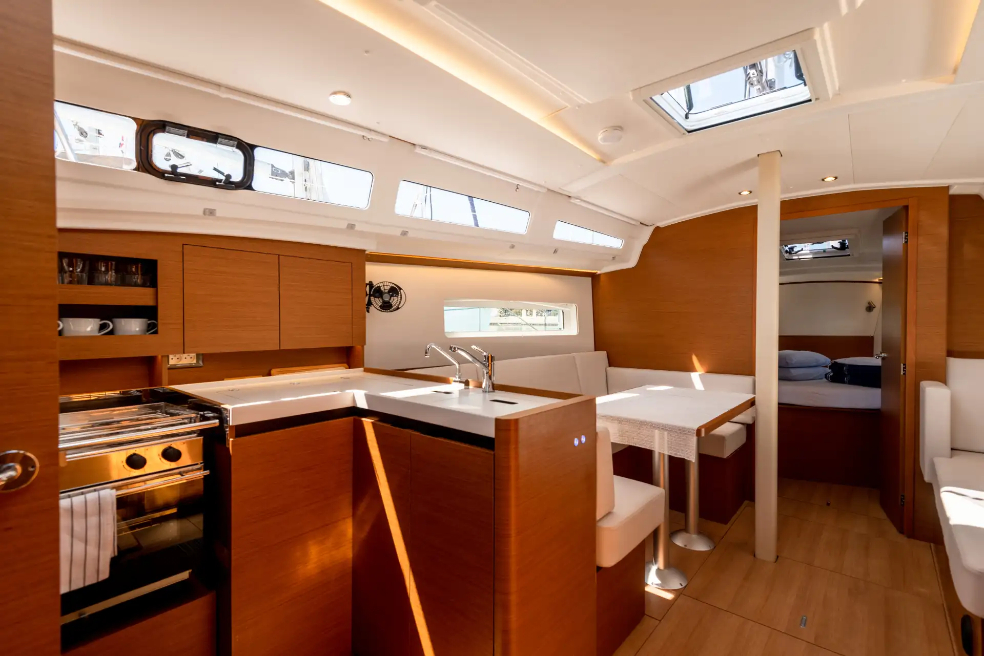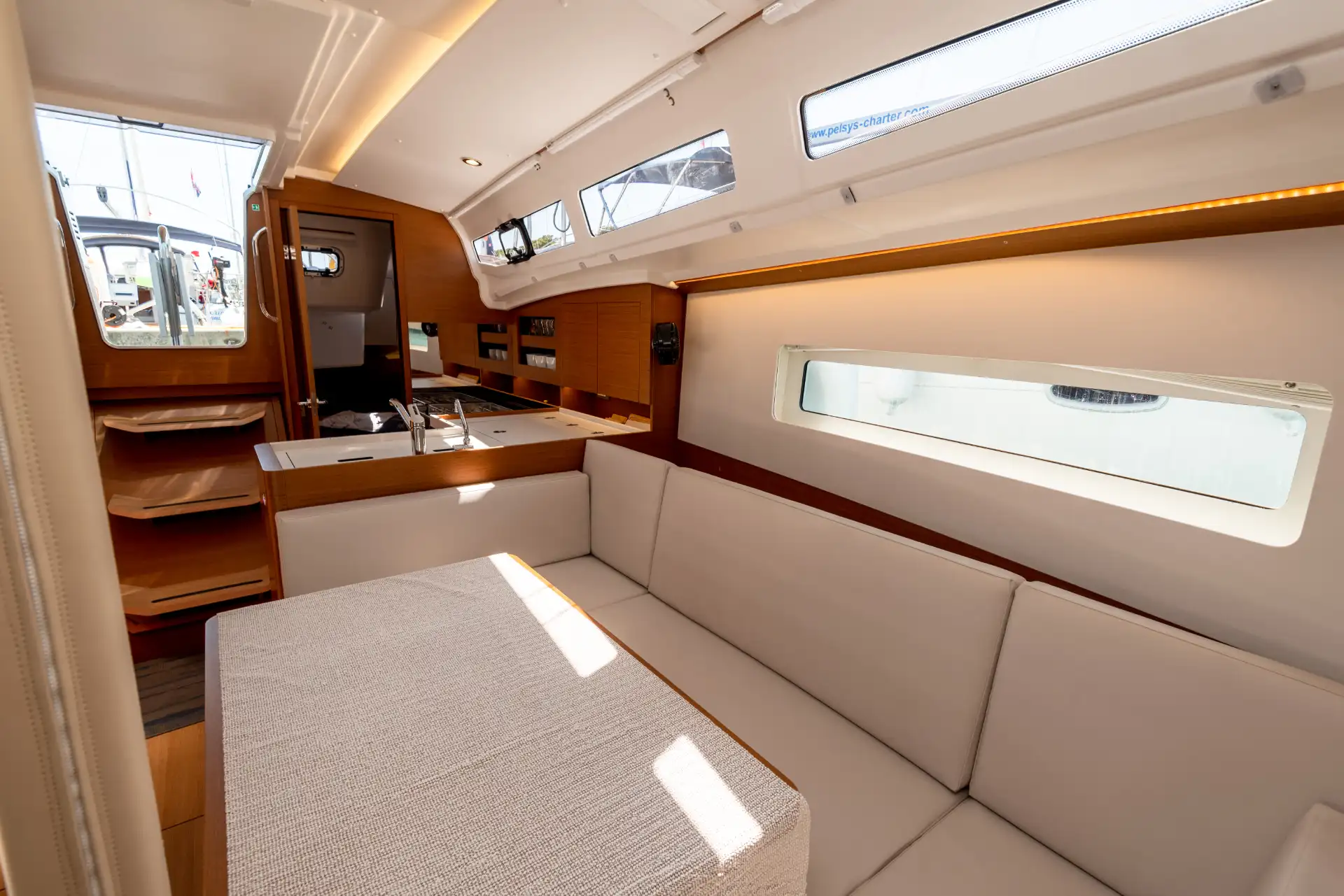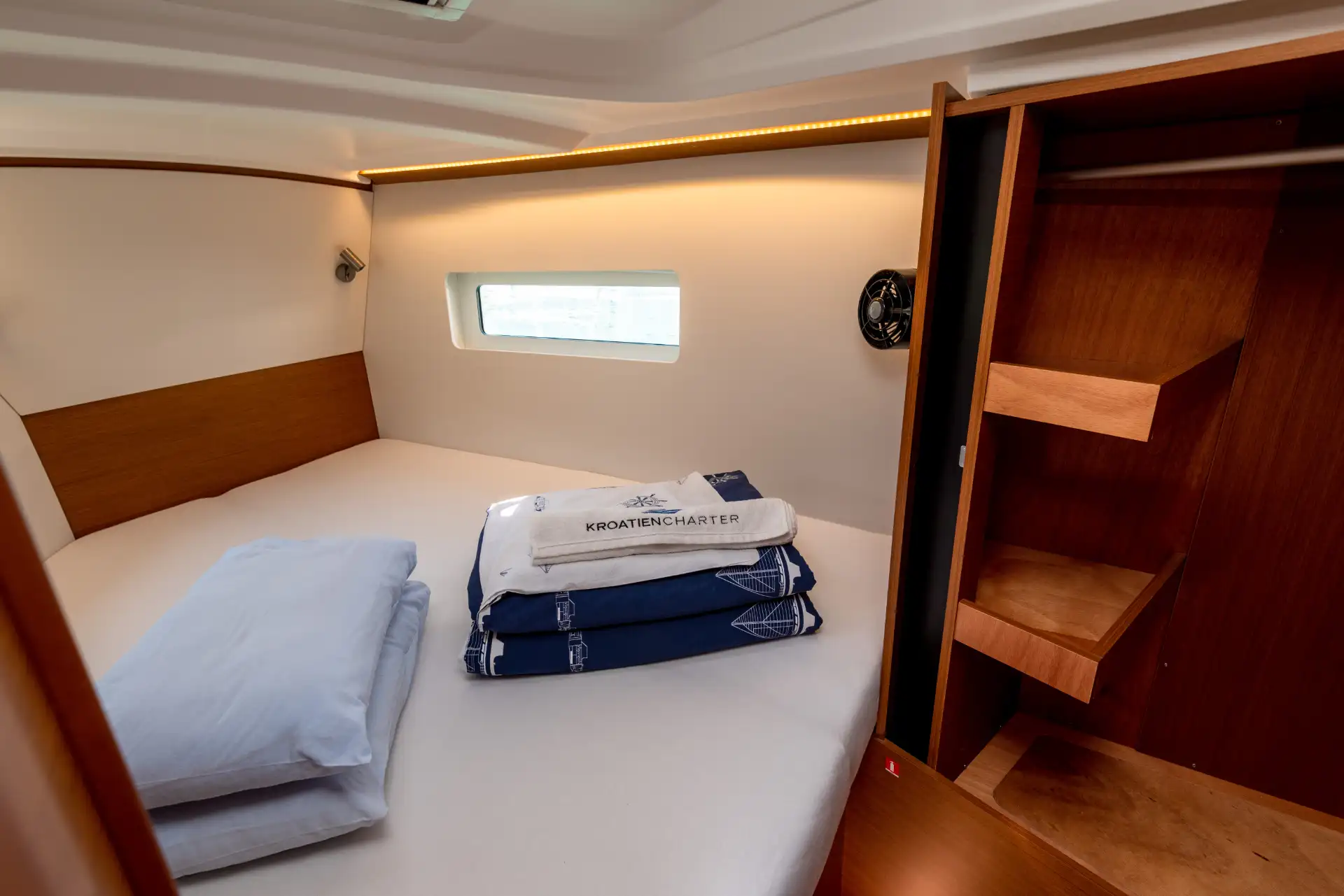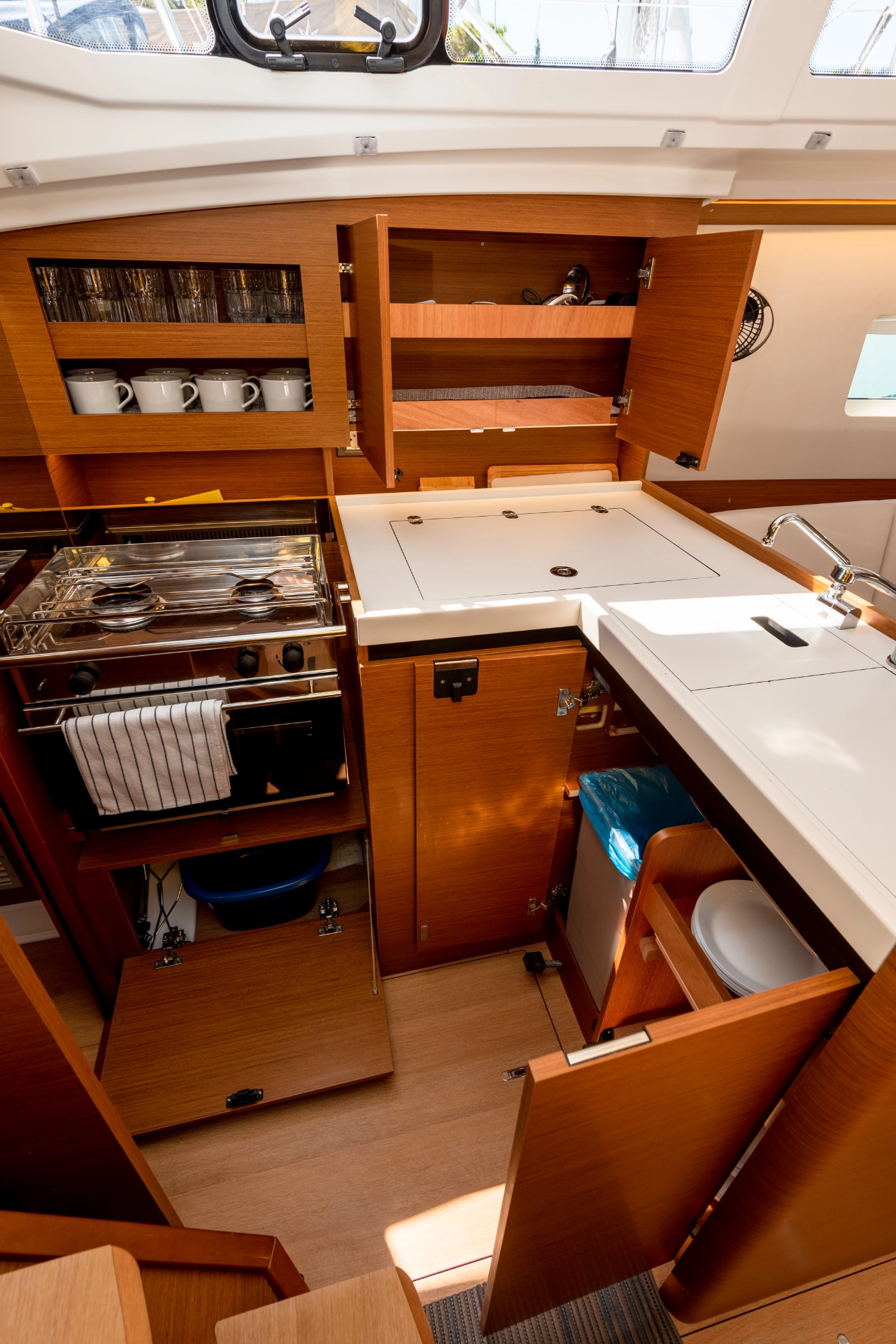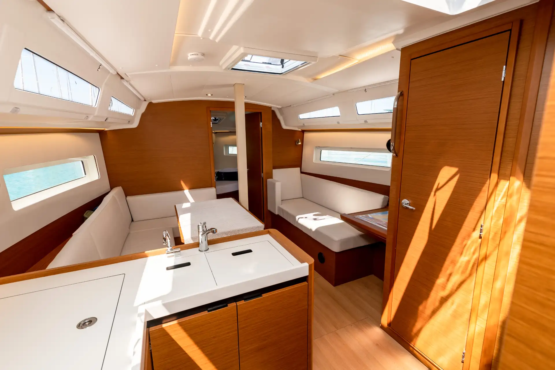 Die große Erfahrung der Jeanneau Bootswerft spiegelt bei dieser Segelyacht in vielen Details wieder. Die Planer der französischen Werft haben es geschafft, auf den knapp zwölf Metern ein geräumiges Zuhause für sechs Personen zu realisieren.