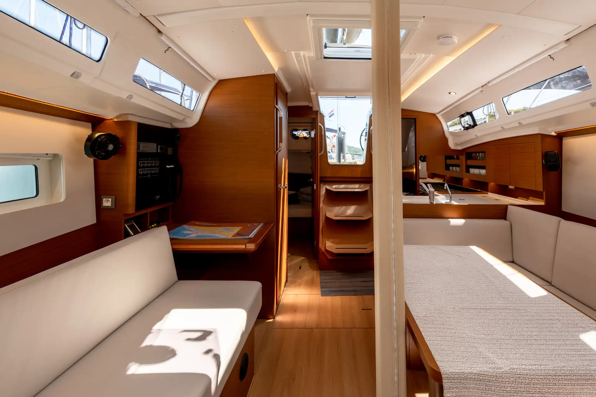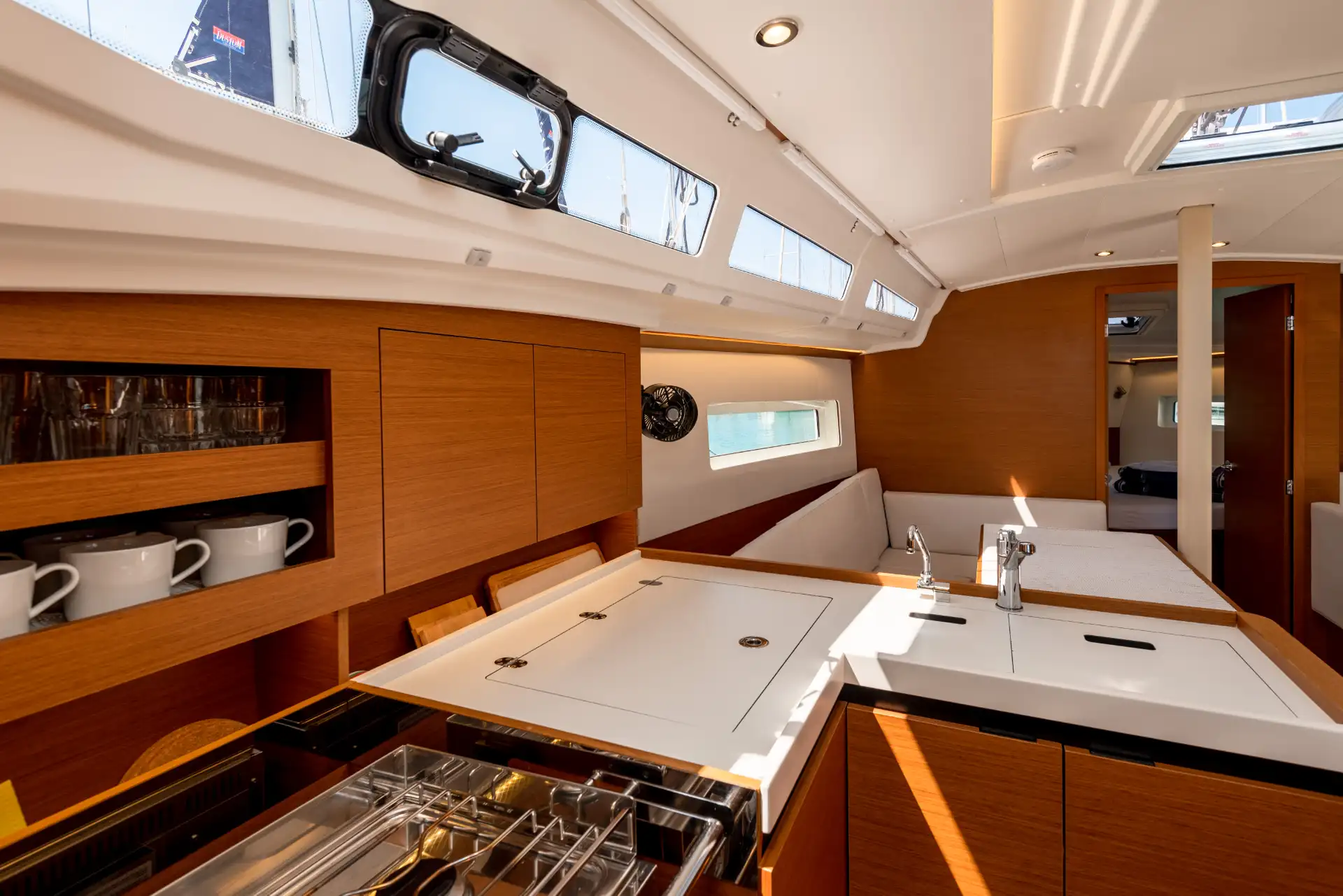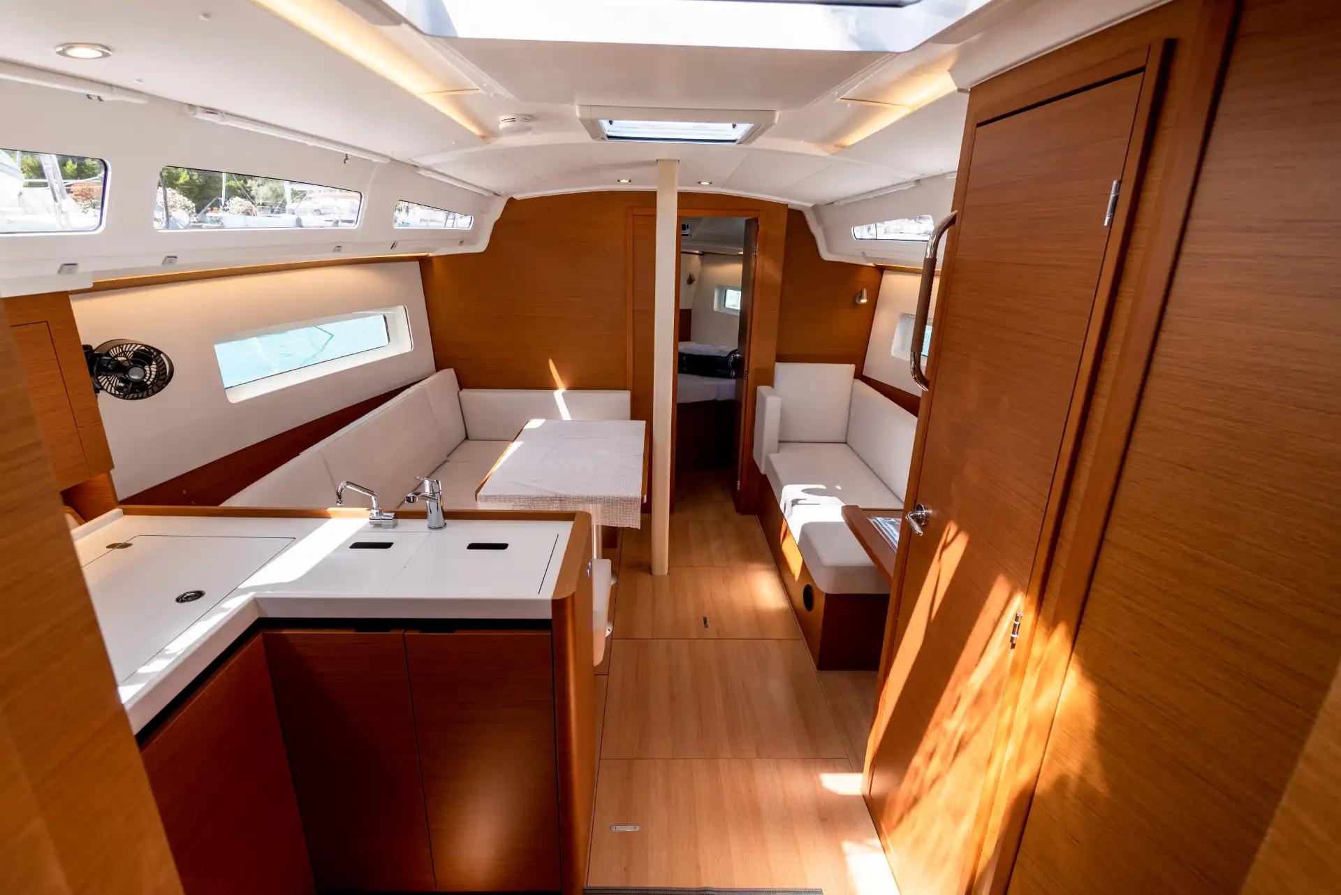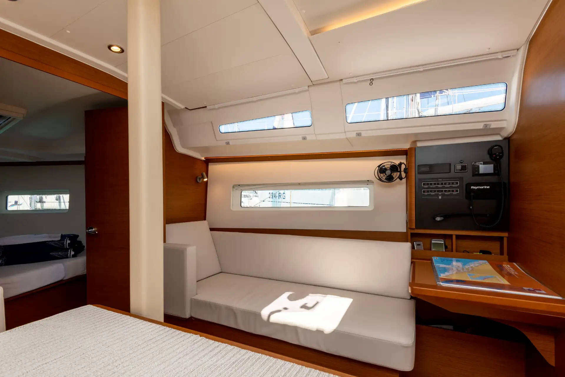 Die große Erfahrung der Jeanneau Bootswerft spiegelt bei dieser Segelyacht in vielen Details wieder. Die Planer der französischen Werft haben es geschafft, auf den knapp zwölf Metern ein geräumiges Zuhause für sechs Personen zu realisieren.