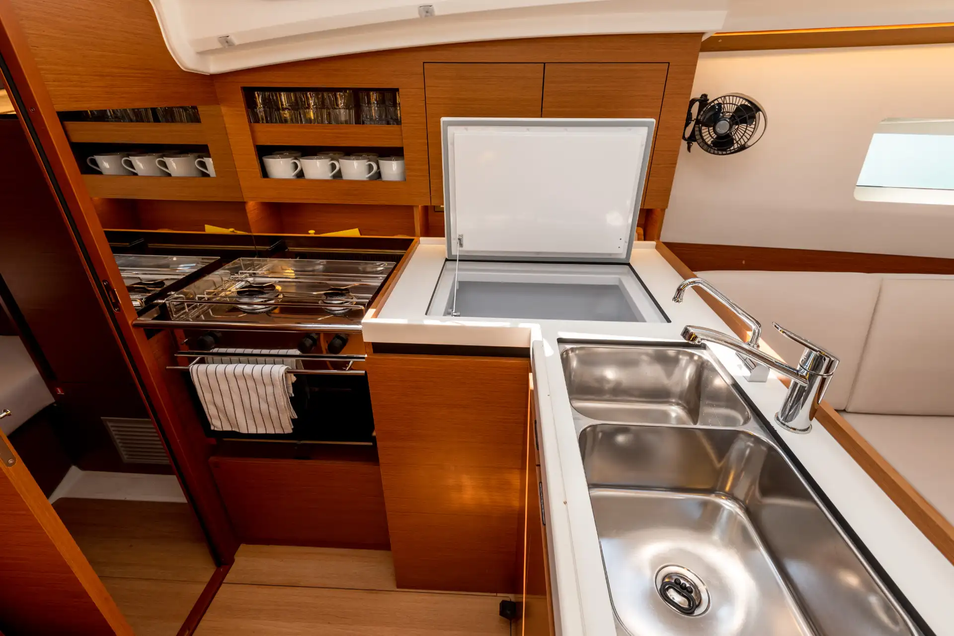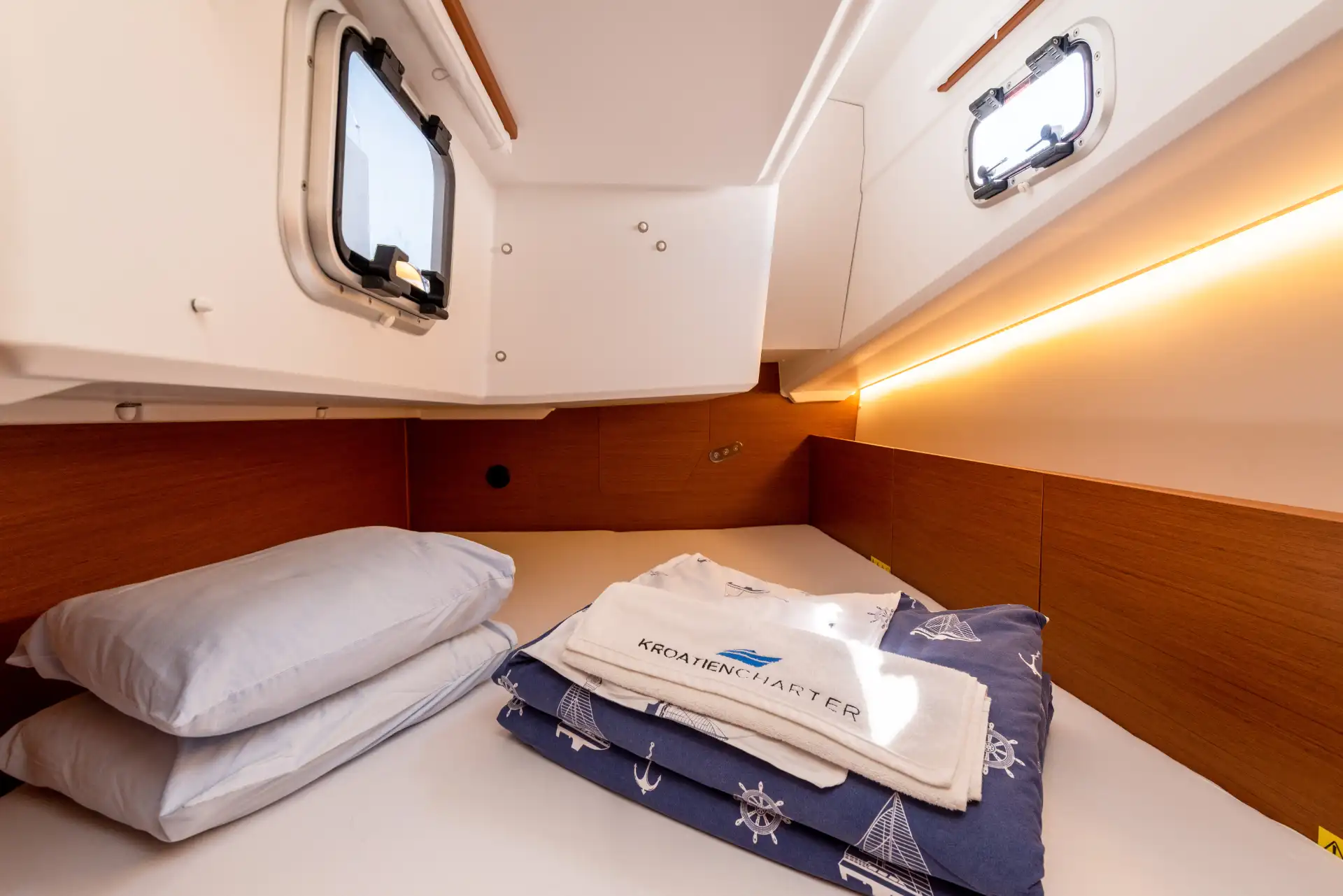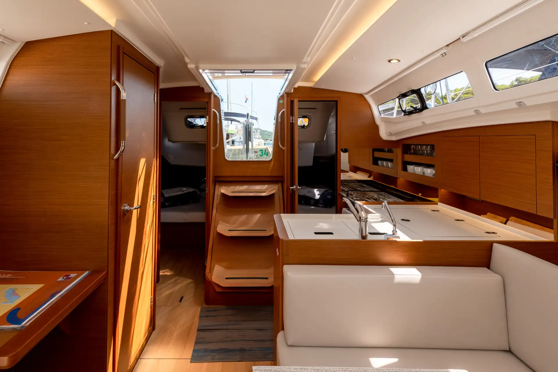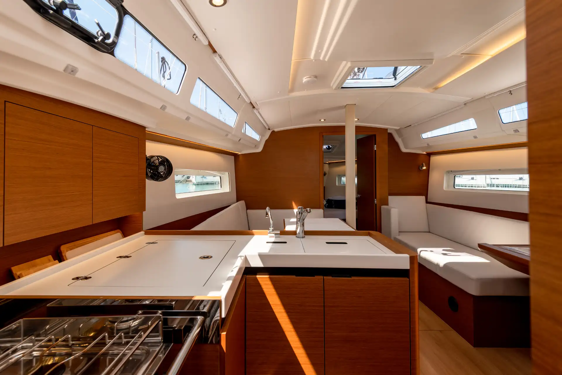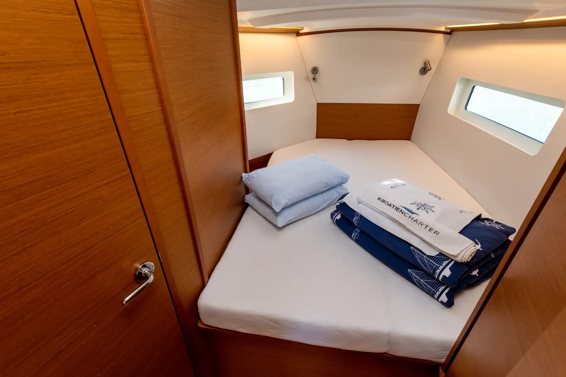 Die große Erfahrung der Jeanneau Bootswerft spiegelt bei dieser Segelyacht in vielen Details wieder. Die Planer der französischen Werft haben es geschafft, auf den knapp zwölf Metern ein geräumiges Zuhause für sechs Personen zu realisieren.