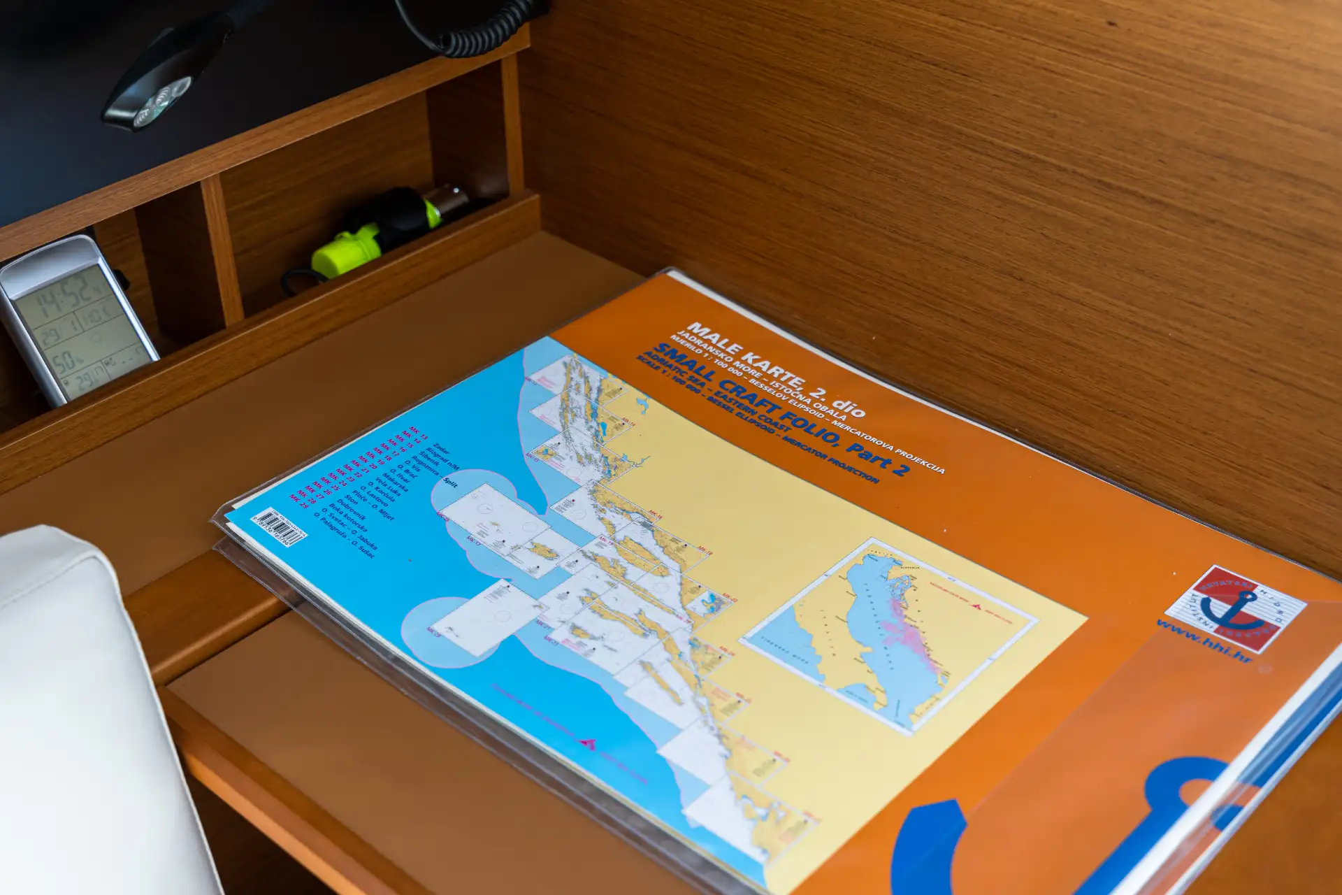 Autopilot, UKW-Funk, GPS-Kartenplotter, Kompass, Echolot, Seekarten, Windmessanlage