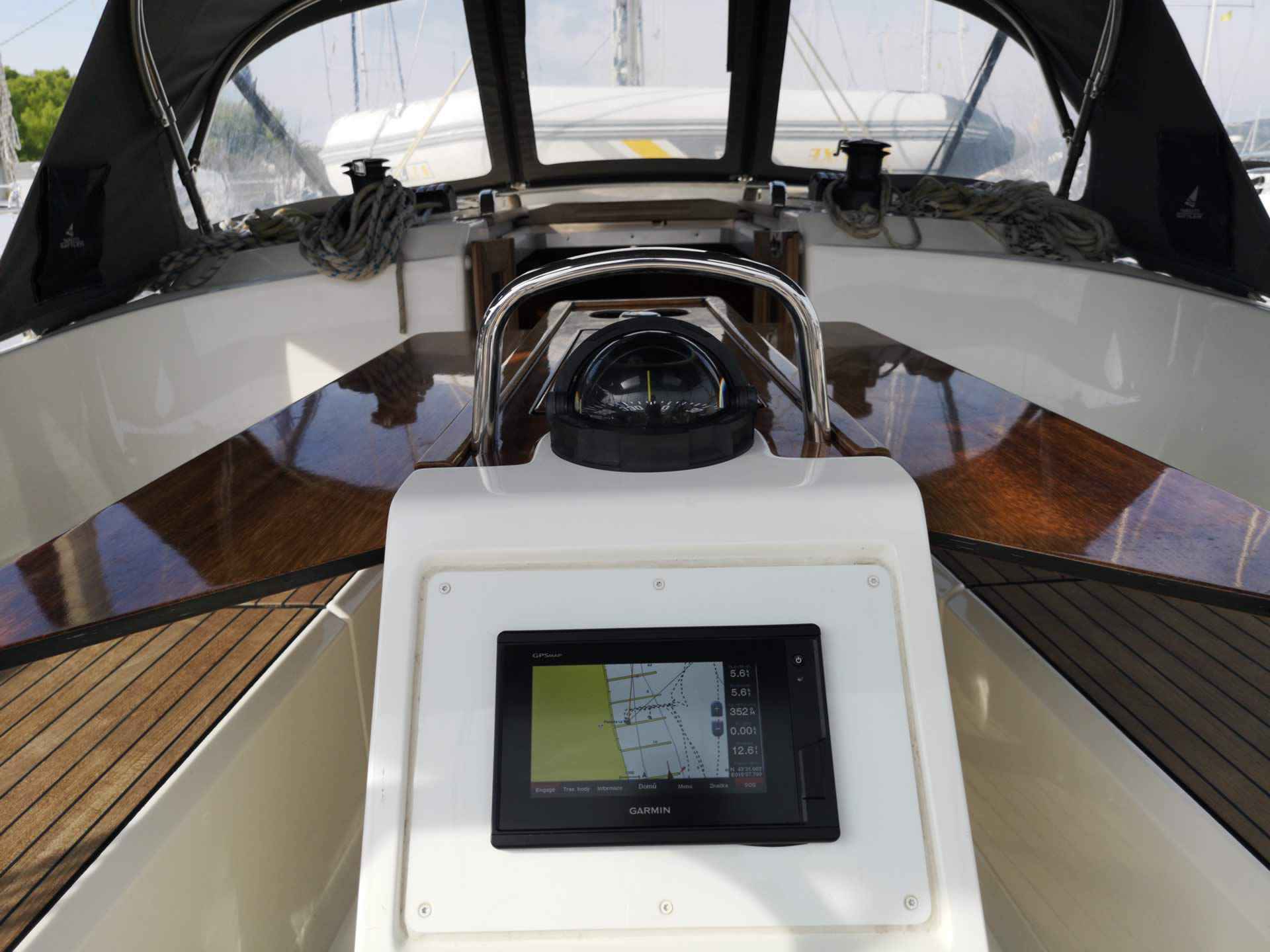 Autopilot, Kartenplotter mit GPS, UKW-Funk, Drehzahlmesser, Echolot, Fernglas, Hafenhandbücher, Kompass, Seekarten, Wetterstation