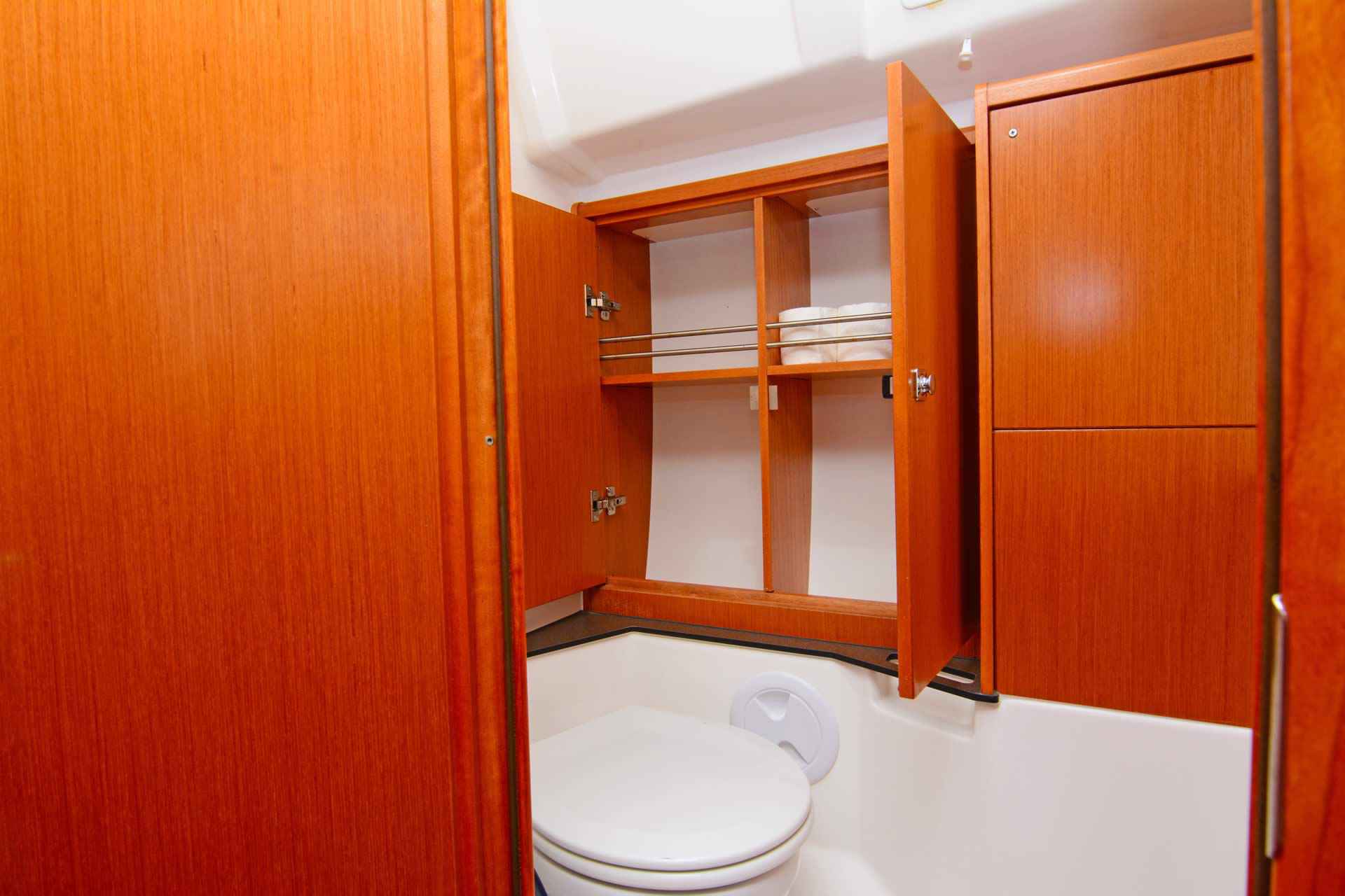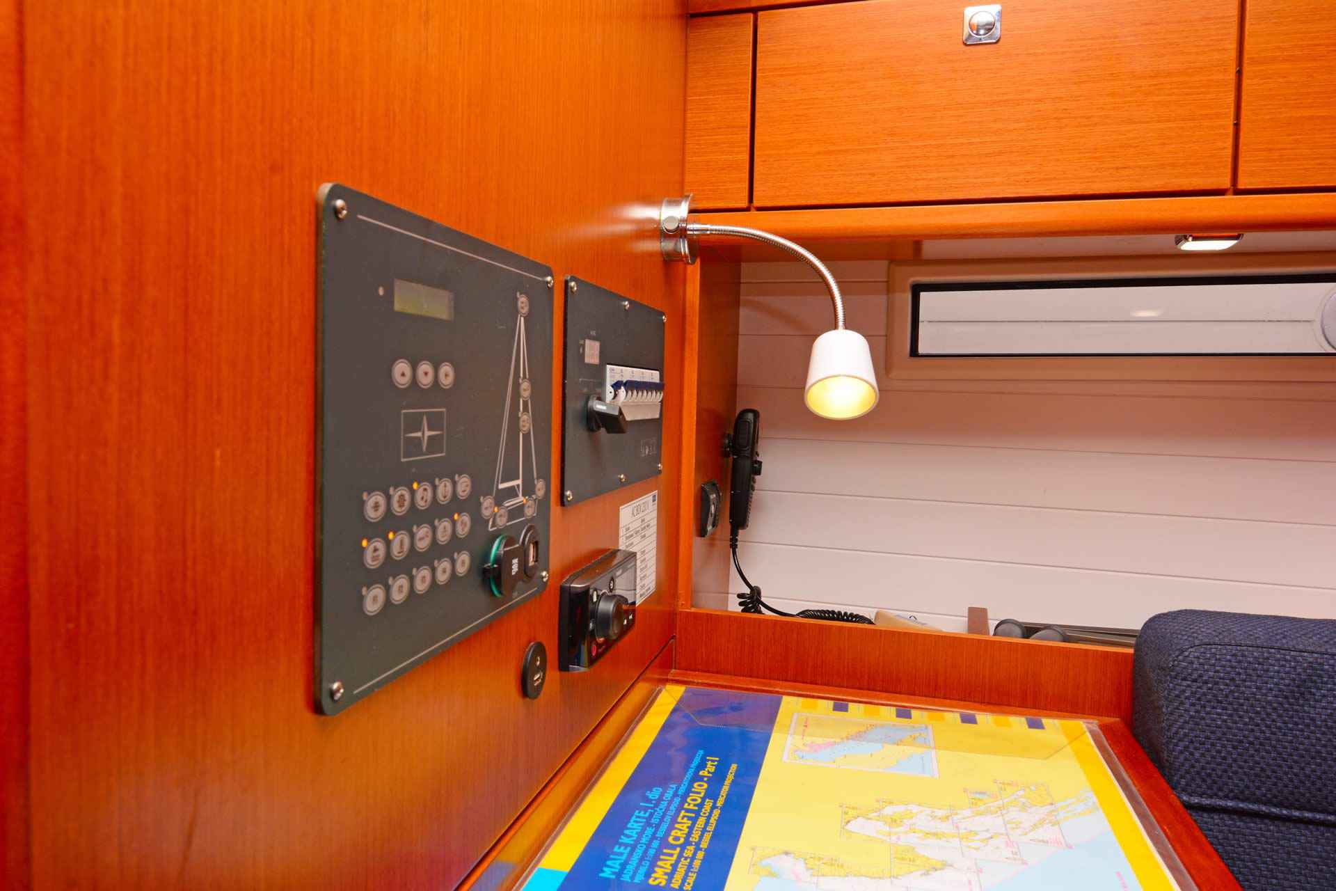 Anker, Ankerkasten, Ankerkette, Ankerwinde elektrisch, zweiter Anker, Batterie-Hauptschalter, Batterieladegerät, Bilgenpumpe elektr., Bilgenpumpe man., Landanschluss 220V, Positionslampen, Steckdosen 220V, Voltmeter, Warmwasseranlage, Werkzeugkasten