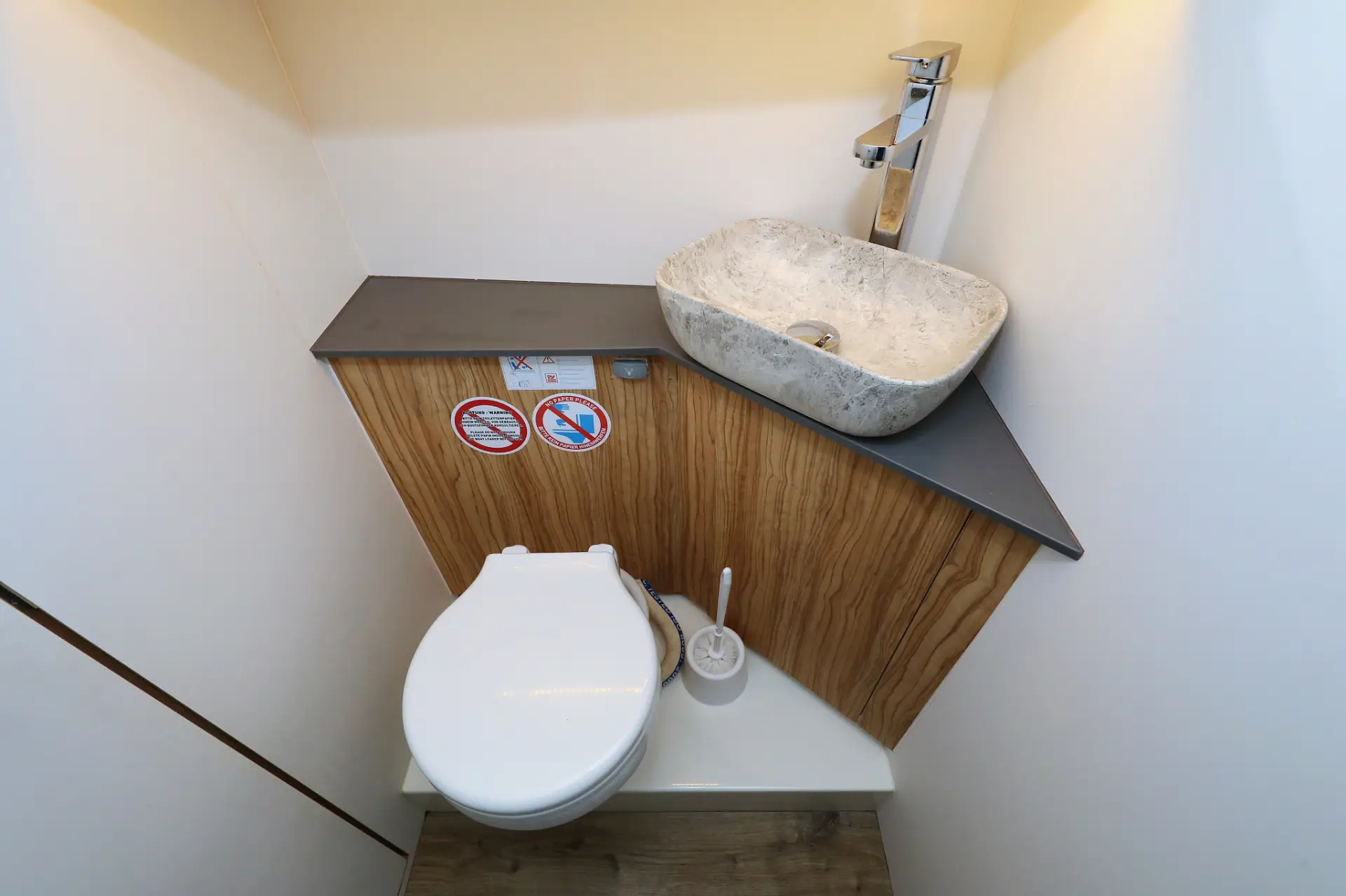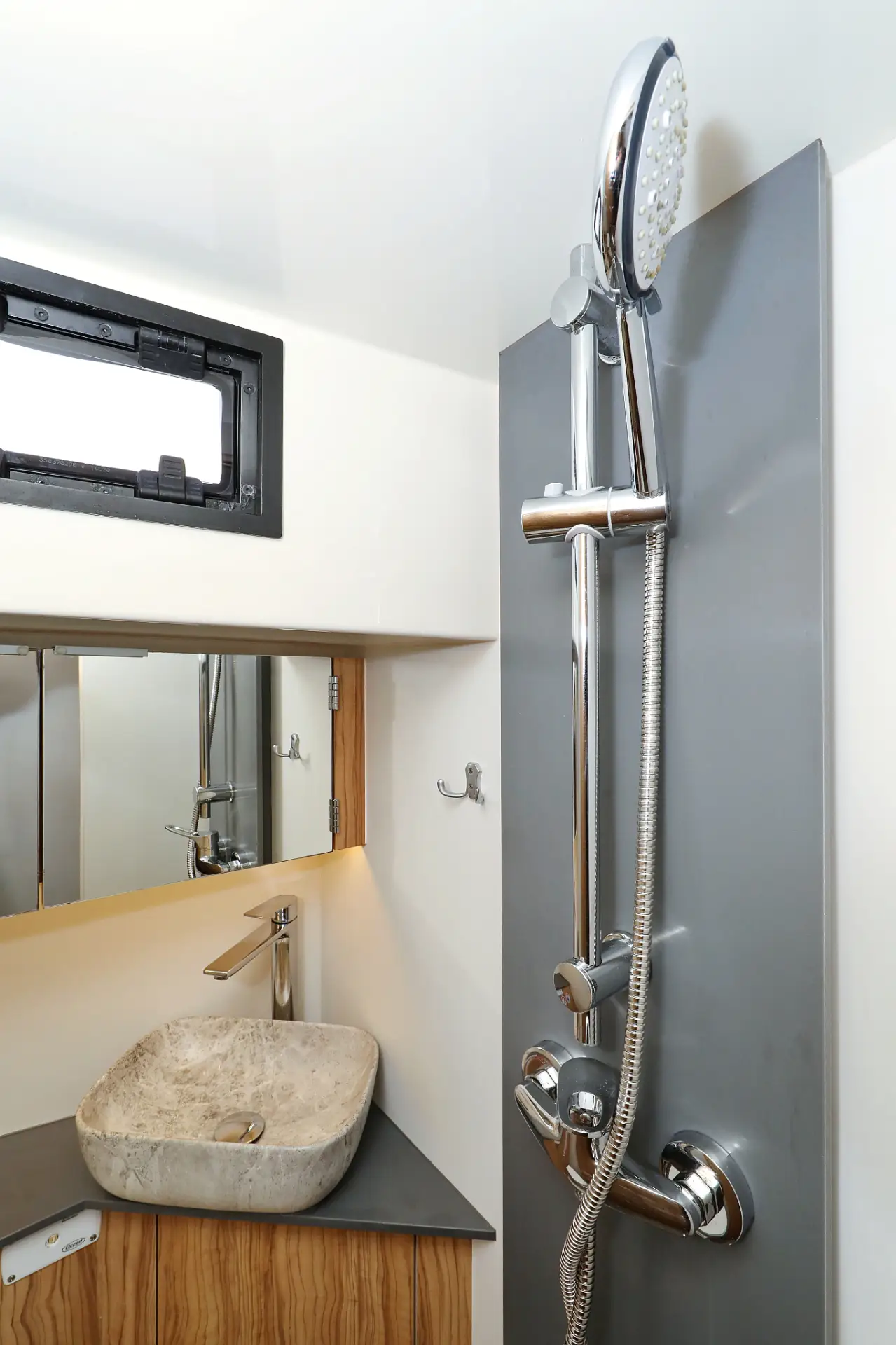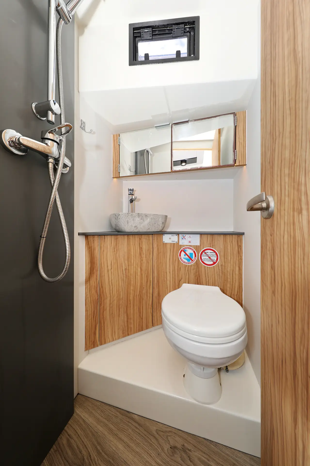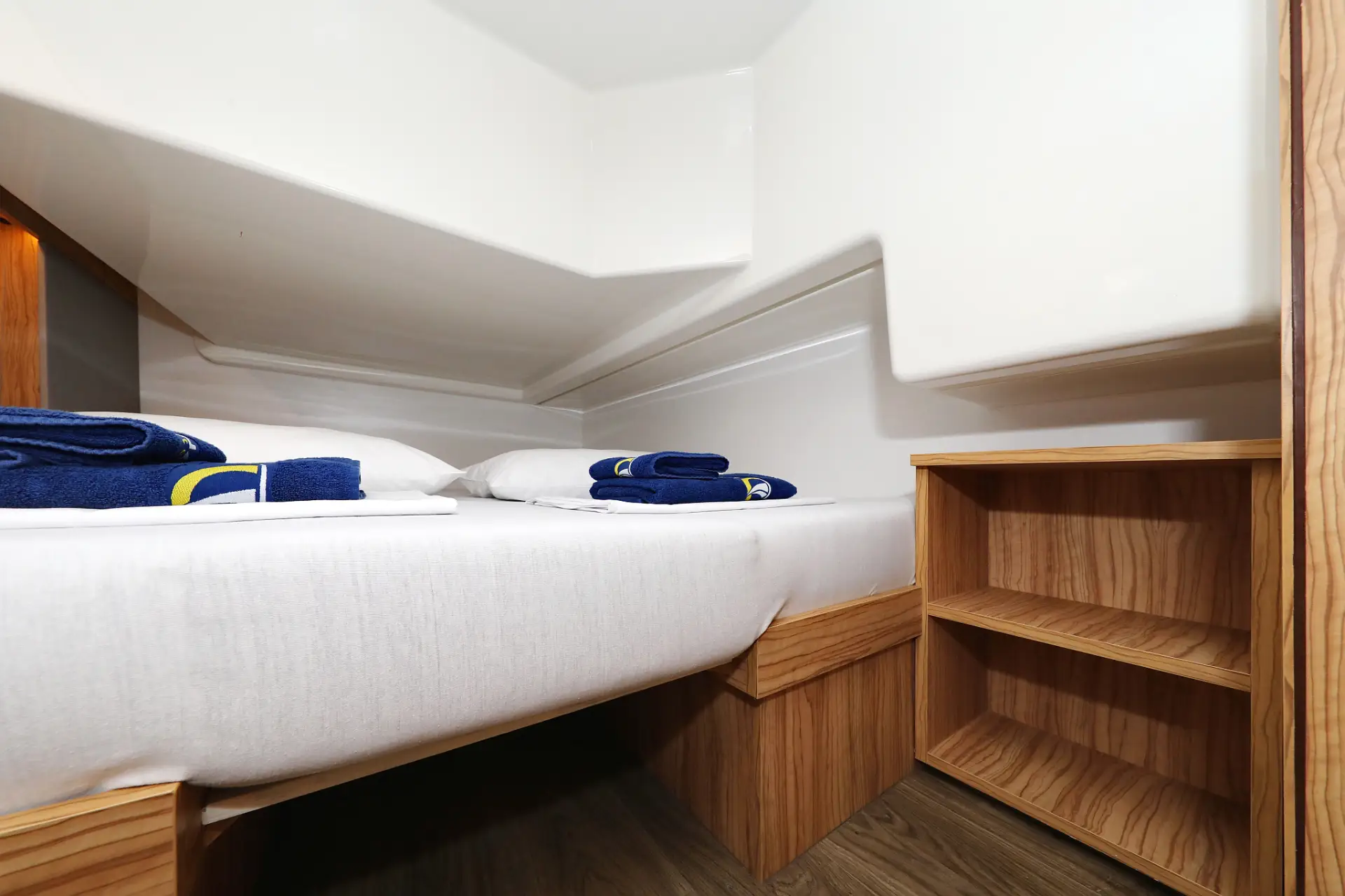 Die Seamaster 45 – Fortuna verfügt über 4 großzügige Kabinen mit ausreichend Schlafmöglichkeiten für bis zu 10 Personen. Besonders die weiträumige Flybridge lädt dazu ein, den Morgen mit einem Blick auf das kristallklare, türkisfarbene Wasser zu genießen oder abends unter dem funkelnden Sternenhimmel zu entspannen. Für höchsten Komfort sorgen die moderne Ausstattung und luxuriöse Annehmlichkeiten wie eine Klimaanlage (bei Landanschluss), zwei großzügige Kühlschränke mit einem Fassungsvermögen von 150 l und 36 l, sowie nachhaltige Solarpanels mit Inverter. Die Navigationshilfen wie Bugstrahlruder und Autopilot machen auch das Führen der Yacht besonders einfach und angenehm.