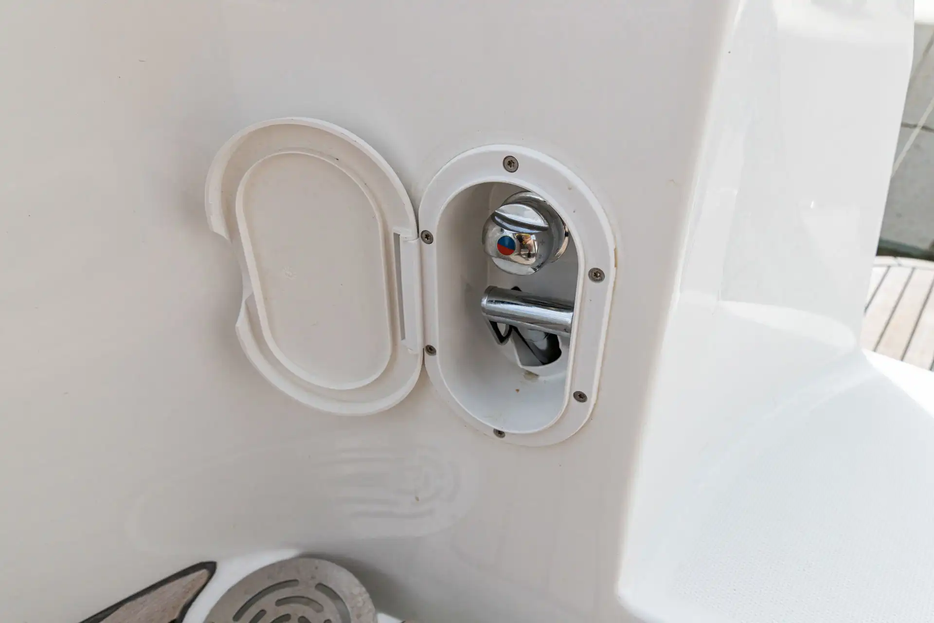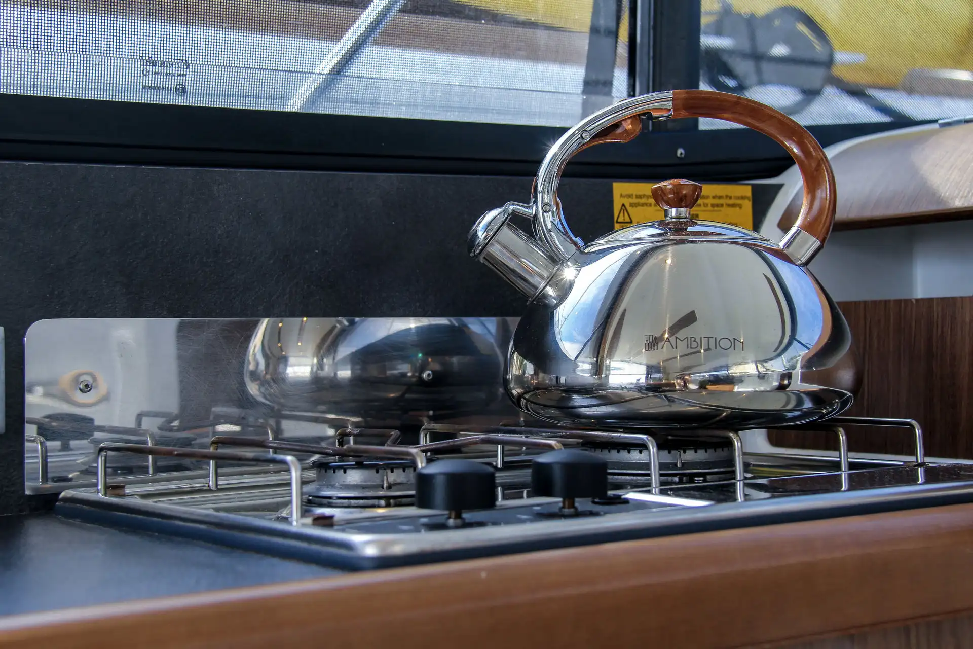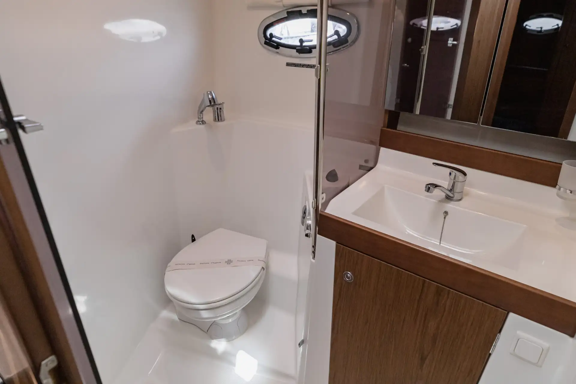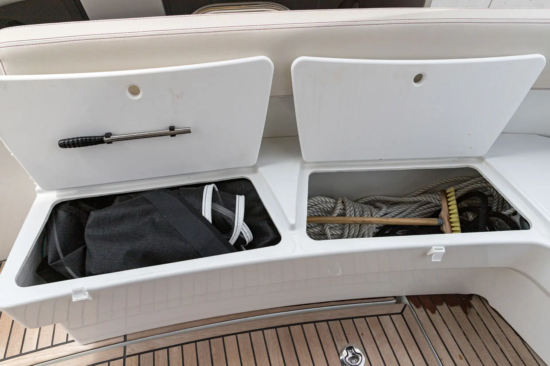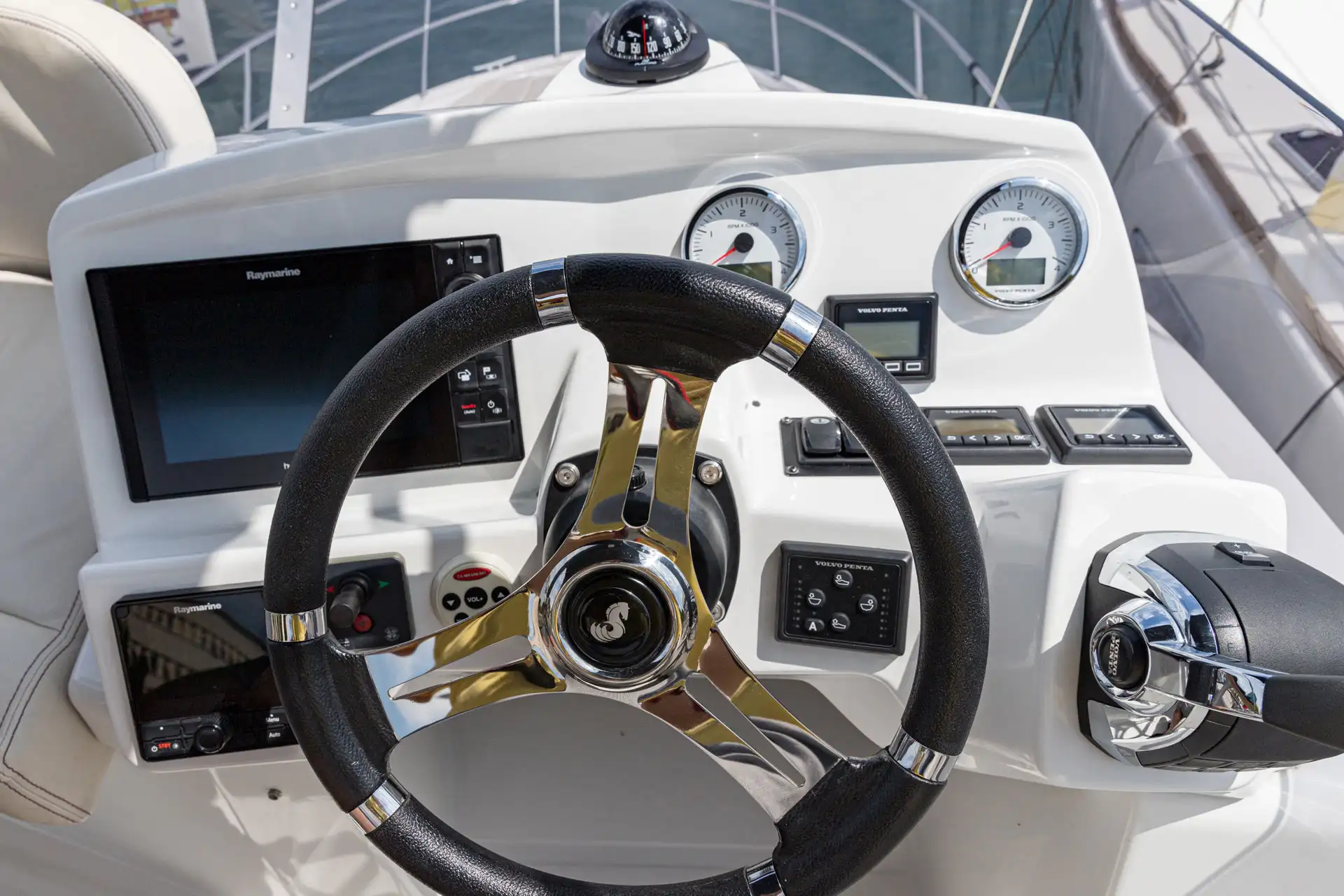Die voll ausgestattete Pantry, ein leistungsstarker Generator und eine Klimaanlage sorgen für ein wohnliches Ambiente. Mit Bug- und Heckstrahlruder kann der Skipper stressfrei und unbesorgt manövrieren, da die Motoryacht äußerst präzise reagiert, ein Beweis für das perfekte Bootsdesign.
