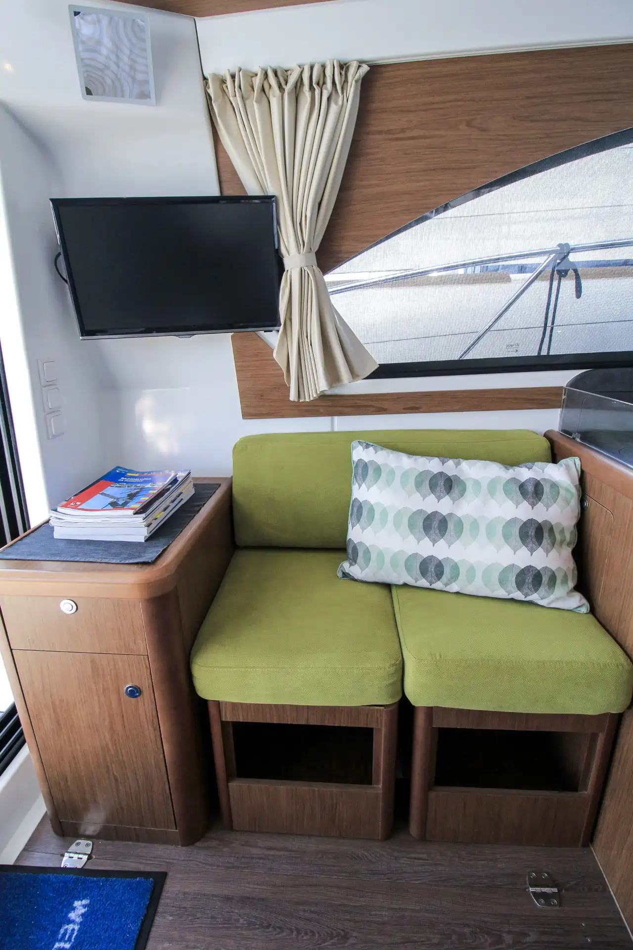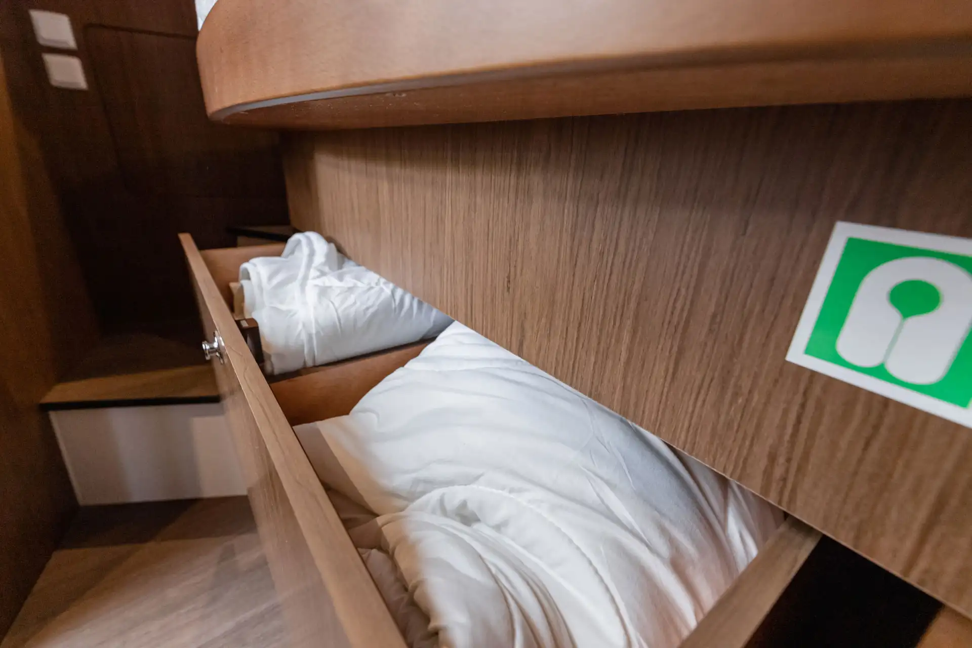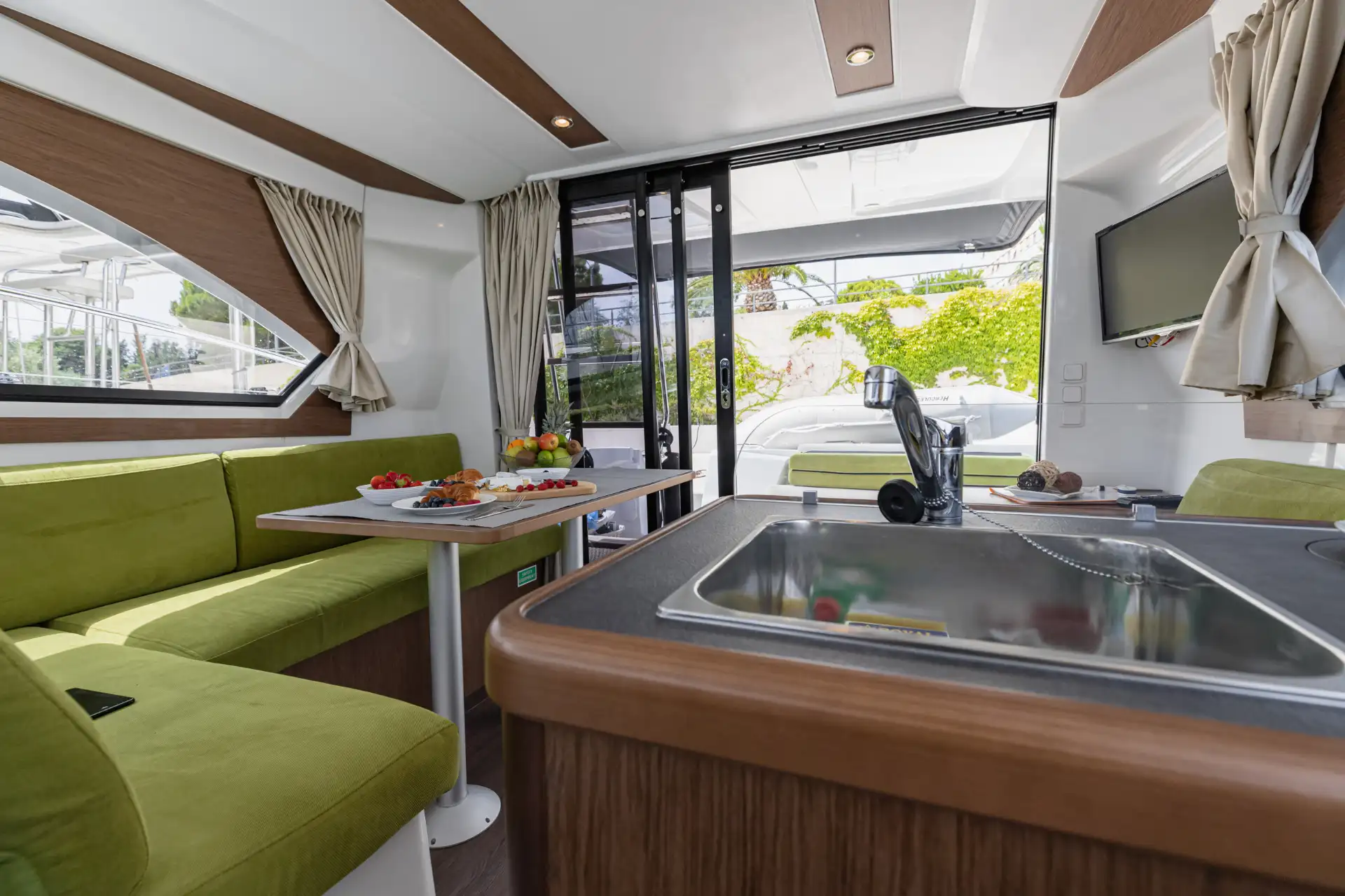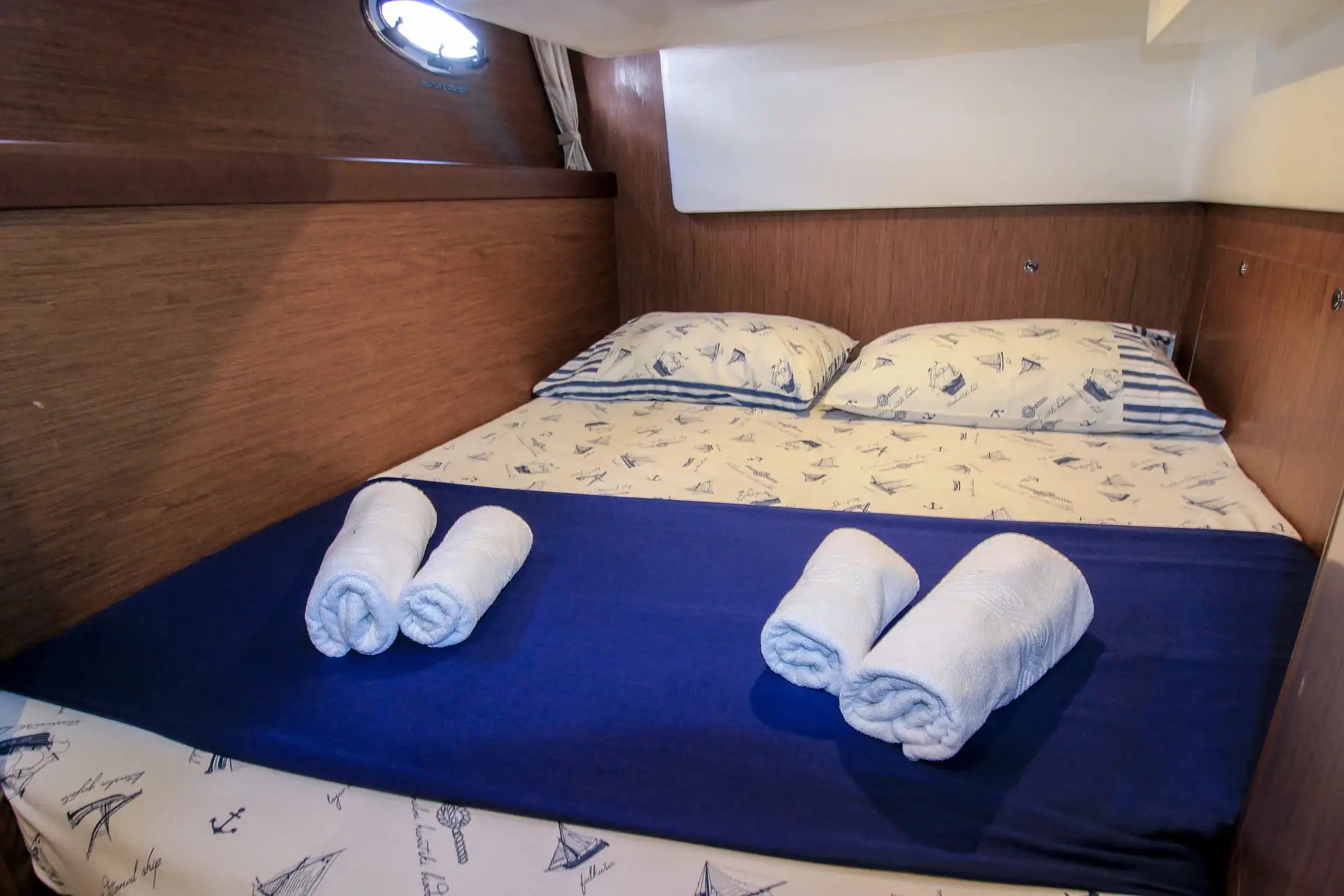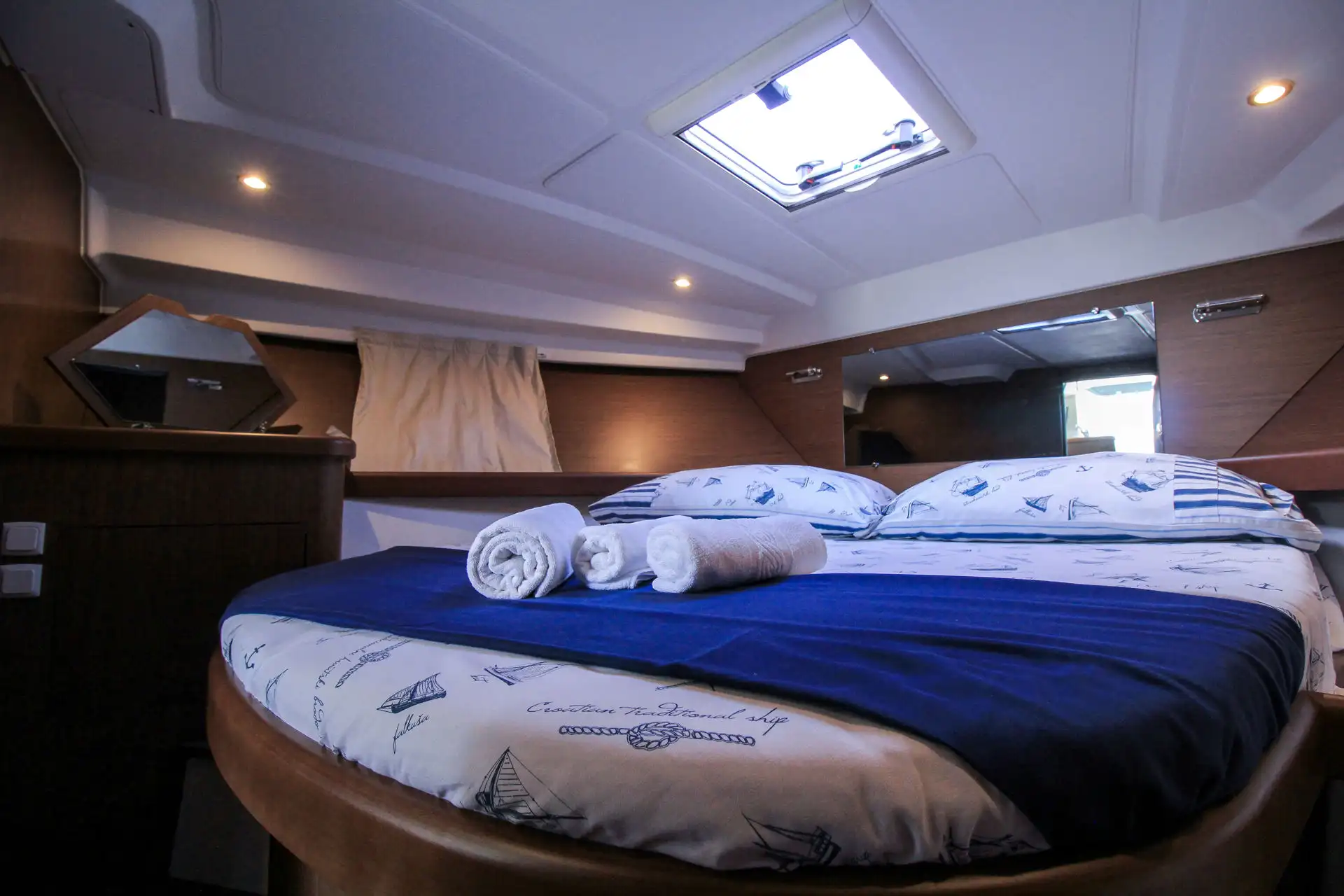 Im Innenraum und in den Kabinen ist alles genau dort, wo es sein sollte. Die Yacht wirkt von innen größer als sie in Wirklichkeit ist. Sie ist der perfekte Ort für einen luxuriösen Familienurlaub in Kroatien – und das zu erschwinglichen Kosten.