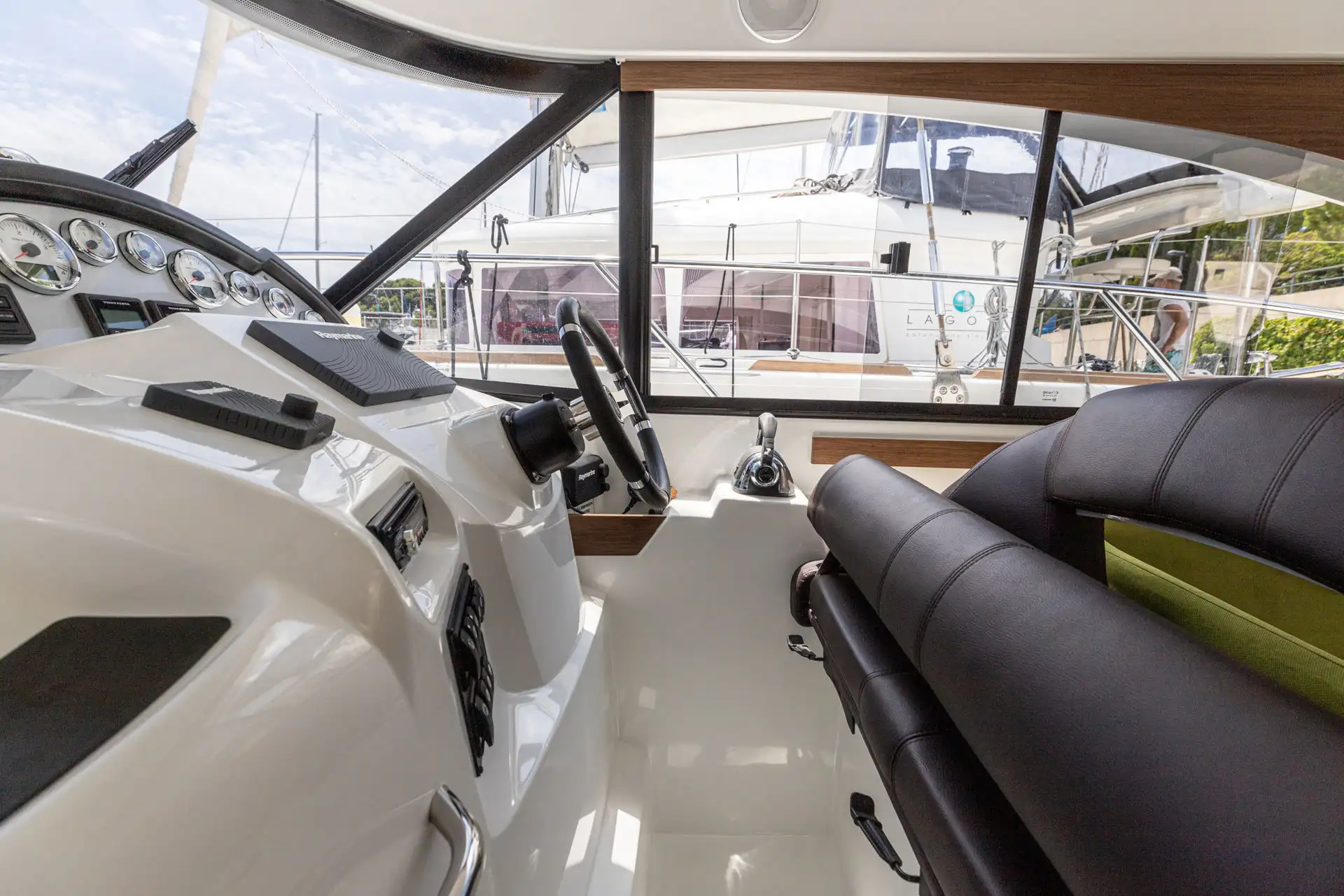 Die Beneteau Antares 36, eine äußerst begehrte Motoryacht aus unserem Portfolio. Mit einer Länge von knapp 11 Metern bietet diese Yacht alles, was man von einer Flybridge Yacht erwartet.