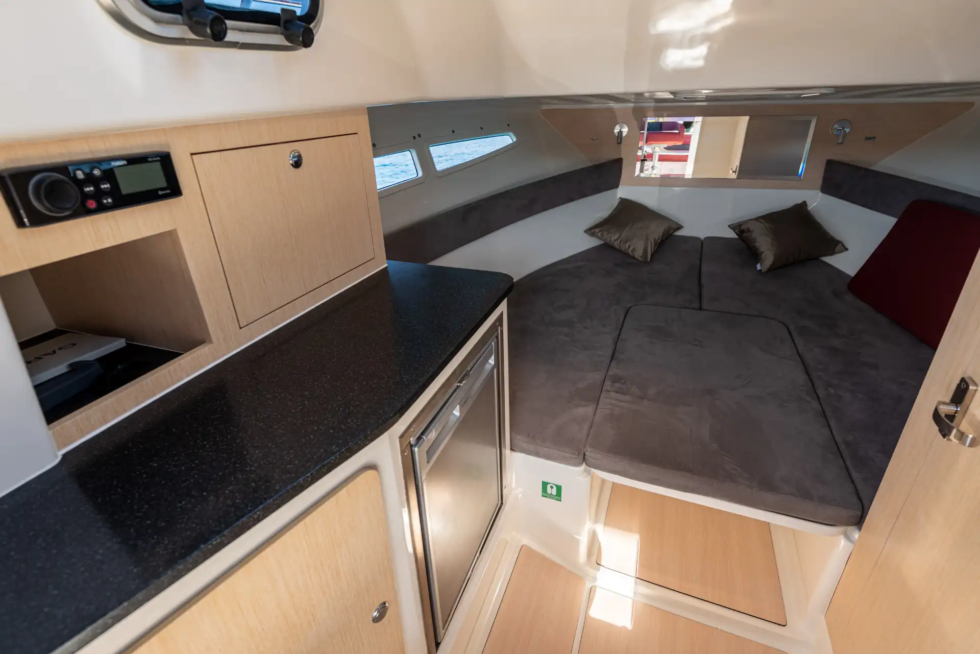 Der großzügige Raum ist optimal genutzt, um sowohl Komfort als auch Funktionalität zu bieten. Auf dem Deck befindet sich eine luxuriöse Sonnen-Lounge, die für Sonnenanbeter konzipiert wurde. In der Kabine finden Sie genug Platz für den einen oder anderen erholsamen Mittagsschlaf.