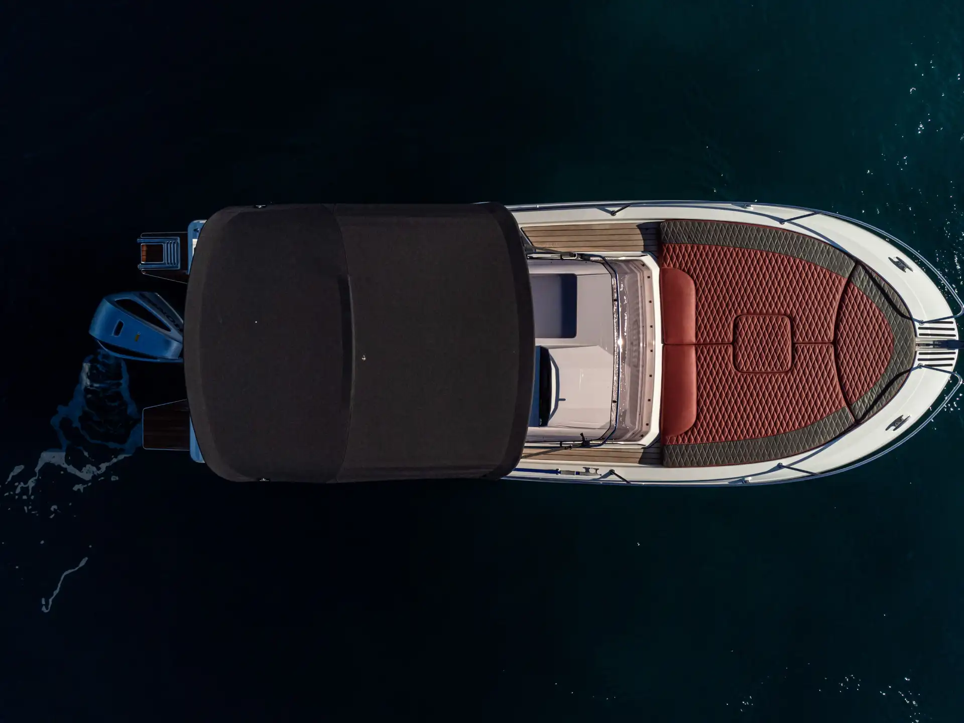 Das einzigartige Design der Atlantic 750 Sun Cruiser bietet die Möglichkeit, das Deck mit Liegekissen in ein großflächiges Sonnendeck zu verwandeln. Dieser Bereich erstreckt sich bis zum Heck des Bootes und bietet so eine luxuriöse Plattform zum Sonnenbaden und Entspannen.