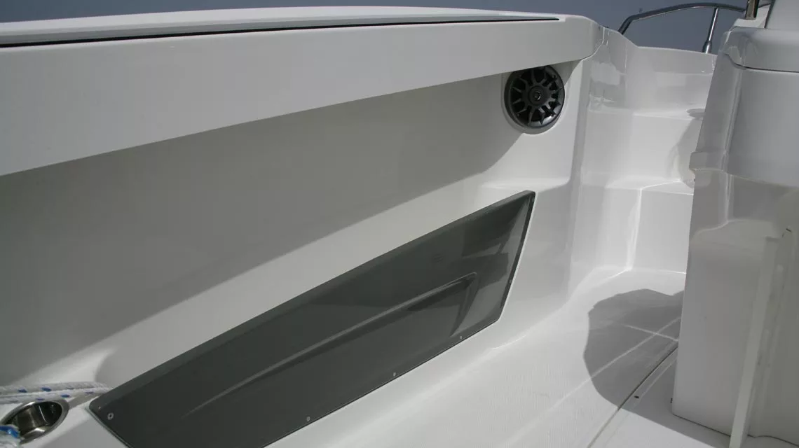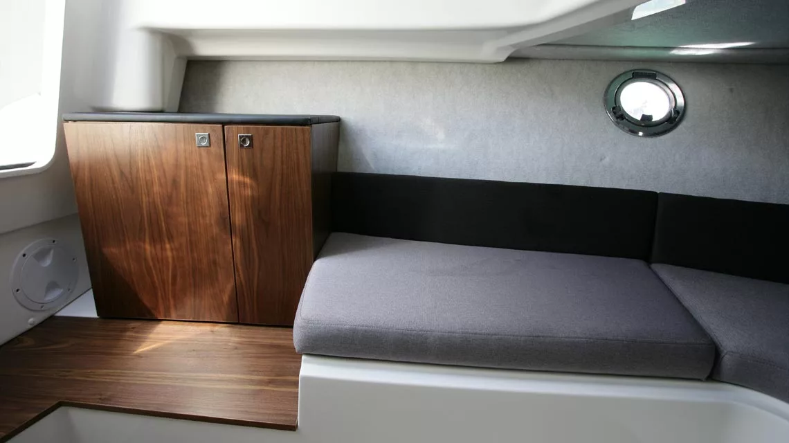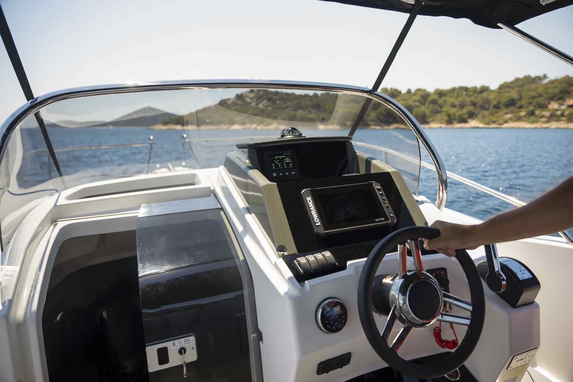 Hochwertig verarbeitet, mit der Rauwasser Tauglichkeit, die dieses Charterboot unverwechselbar macht. Eine geräumige Schlupf Kabine rundet das großzügige Raumangebot ab.