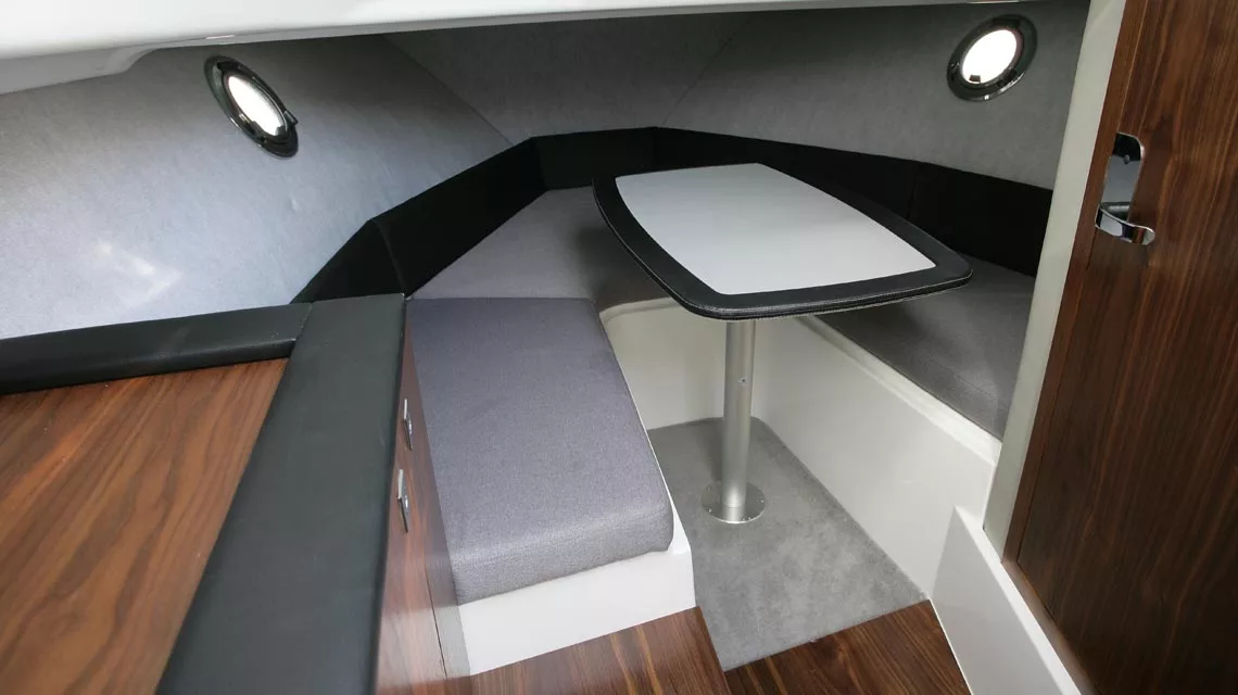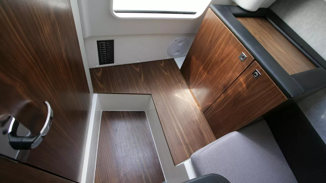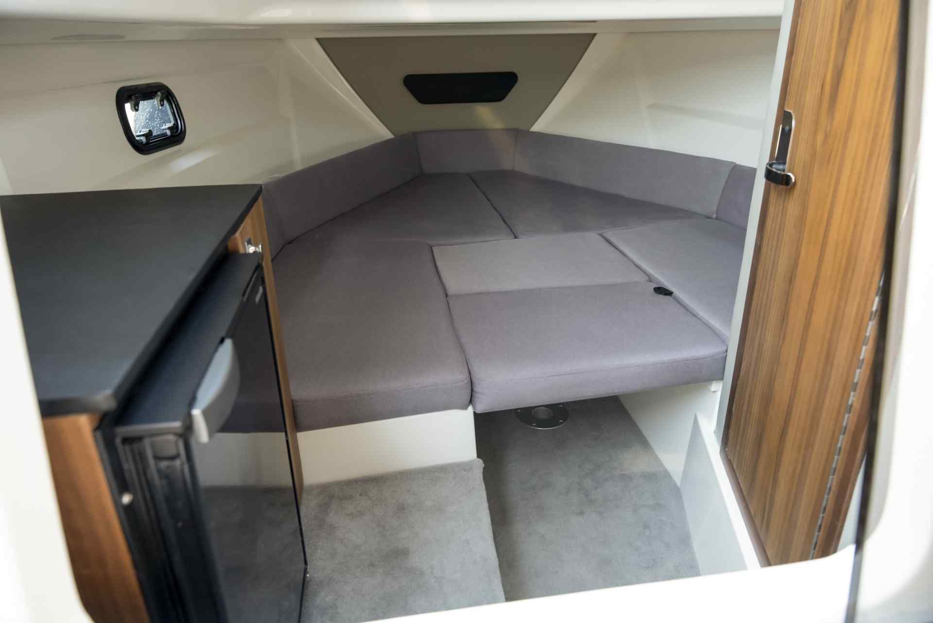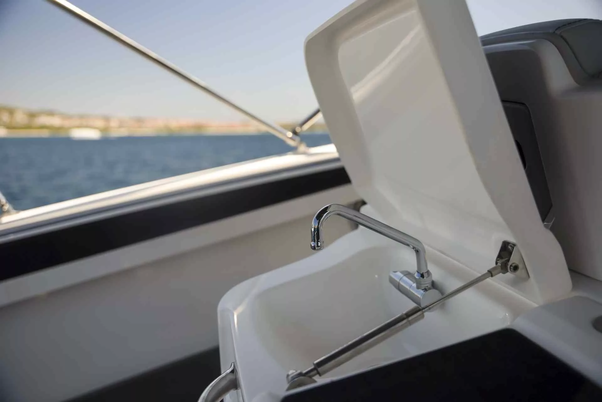 Hochwertig verarbeitet, mit der Rauwasser Tauglichkeit, die dieses Charterboot unverwechselbar macht. Eine geräumige Schlupf Kabine rundet das großzügige Raumangebot ab.