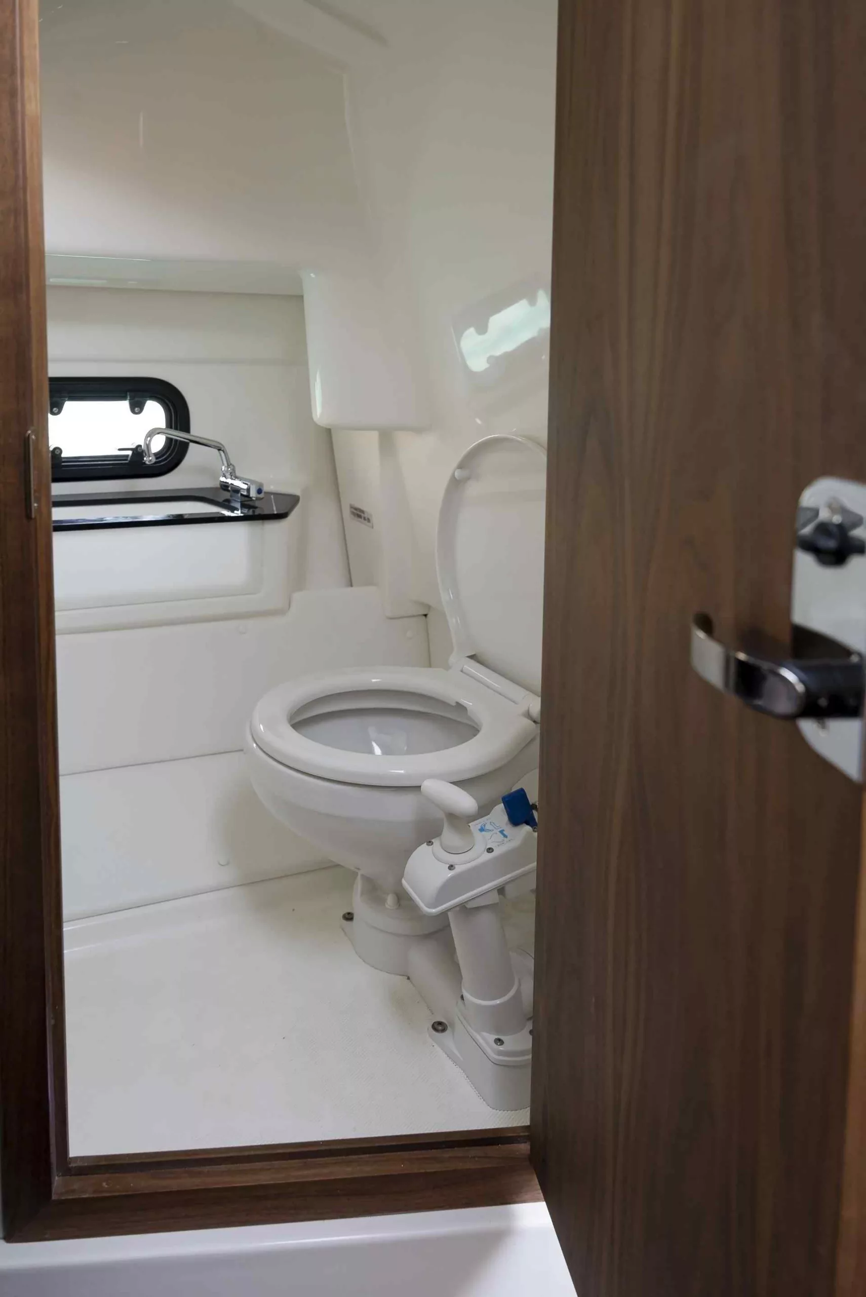 Ein besonderes Highlight ist die elektrische Toilette in der Schlupf Kabine. Somit steht auch der einen oder anderen Übernachtung an Board nichts mehr im Wege.