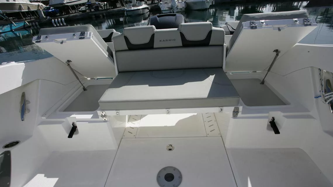 Die neue Karnic SL 702 ist ein sogenanntes Konsolen Boot mit einem mittleren Steuerstand oder auch Walkaround Boot genannt. Ein erstklassiges Sportboot für Nautiker mit Schönwetterambitionen – das zeigt schon allein ihr Grundkonzept.