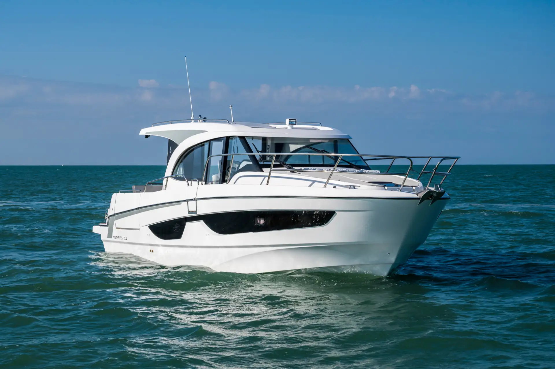 - Die Antares 11 ist das größte Boot der Antares-Reihe von Beneteau und verfügt über eine Gesamtlänge von 11 Metern. Sie ist robust und zuverlässig und bietet enormen Komfort und viel Sicherheit auf hoher See.