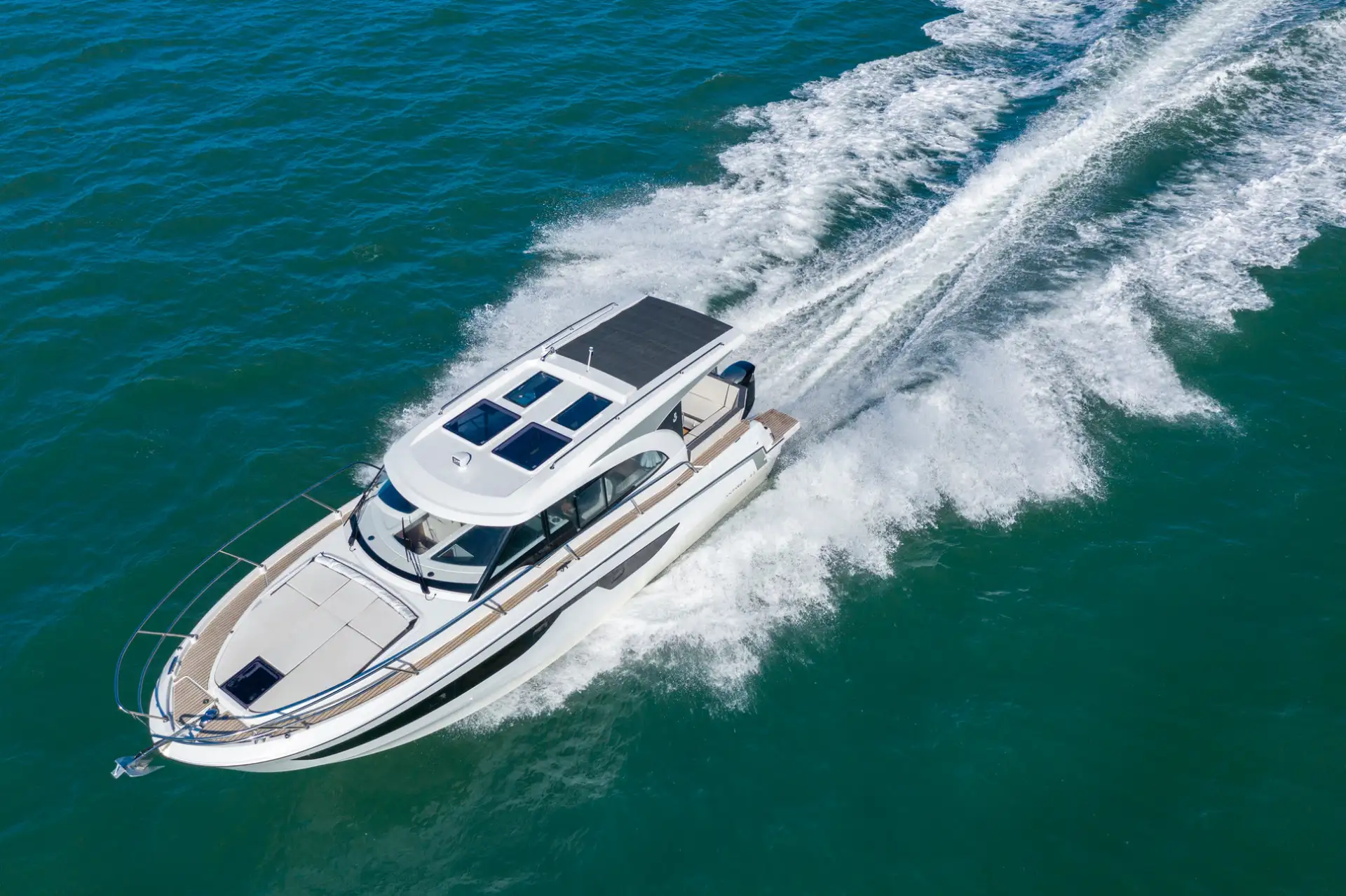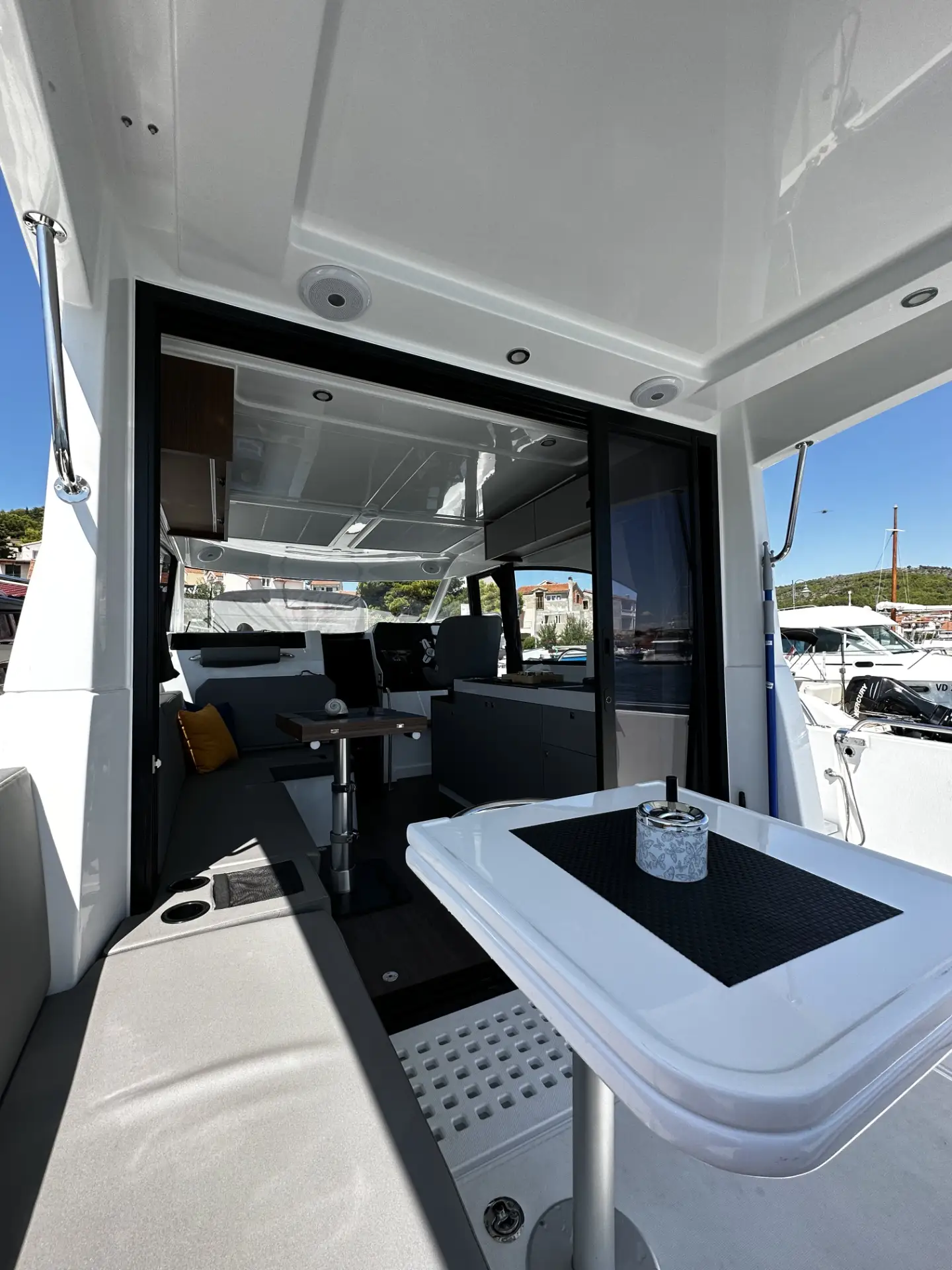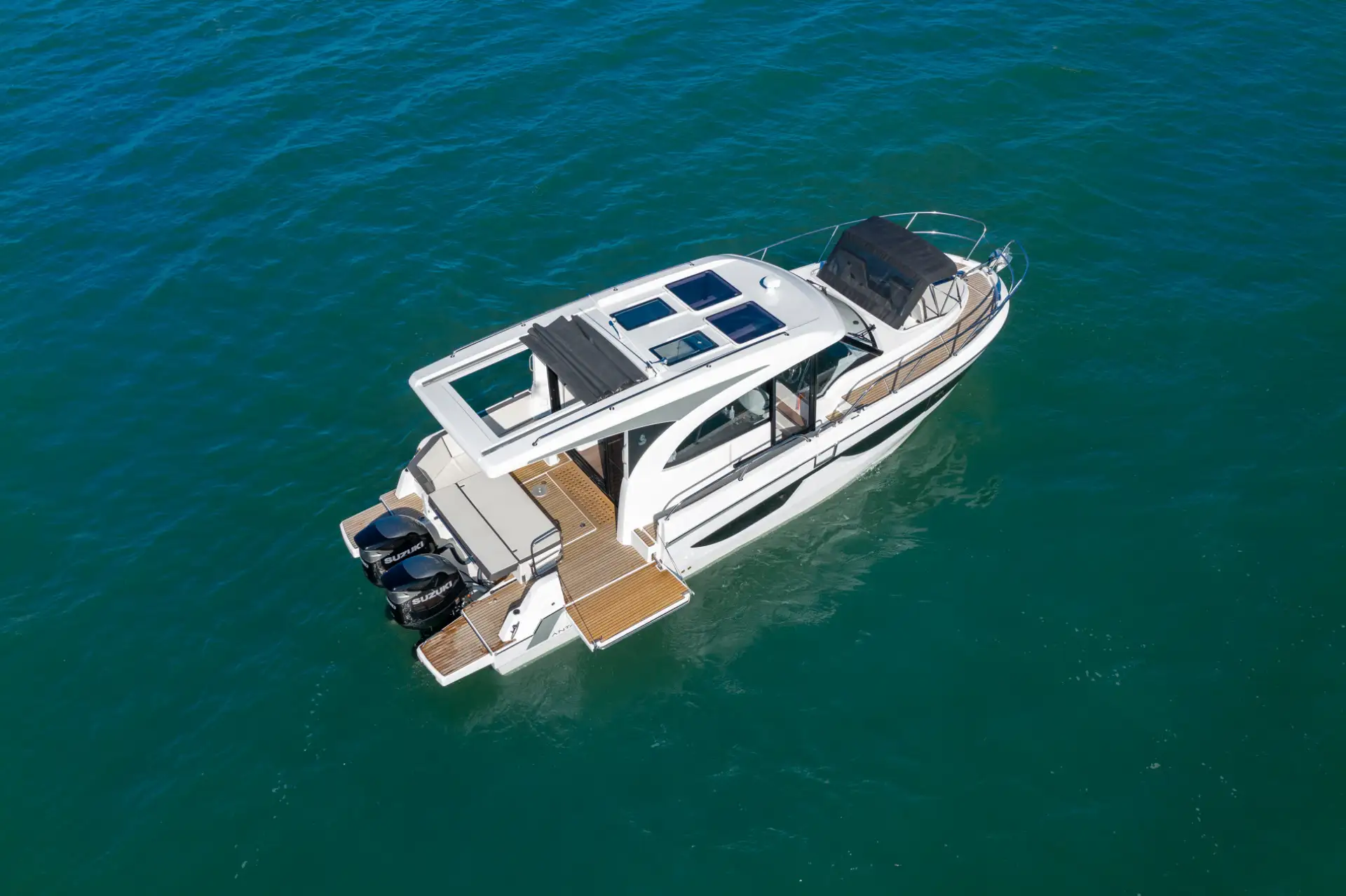 - An Deck bietet die Antares 11 ein großes Sonnendeck und eine geräumige Badeplattform. Der Cockpit-Bereich ist gut geschützt und komfortabel, ideal für gesellige Momente.