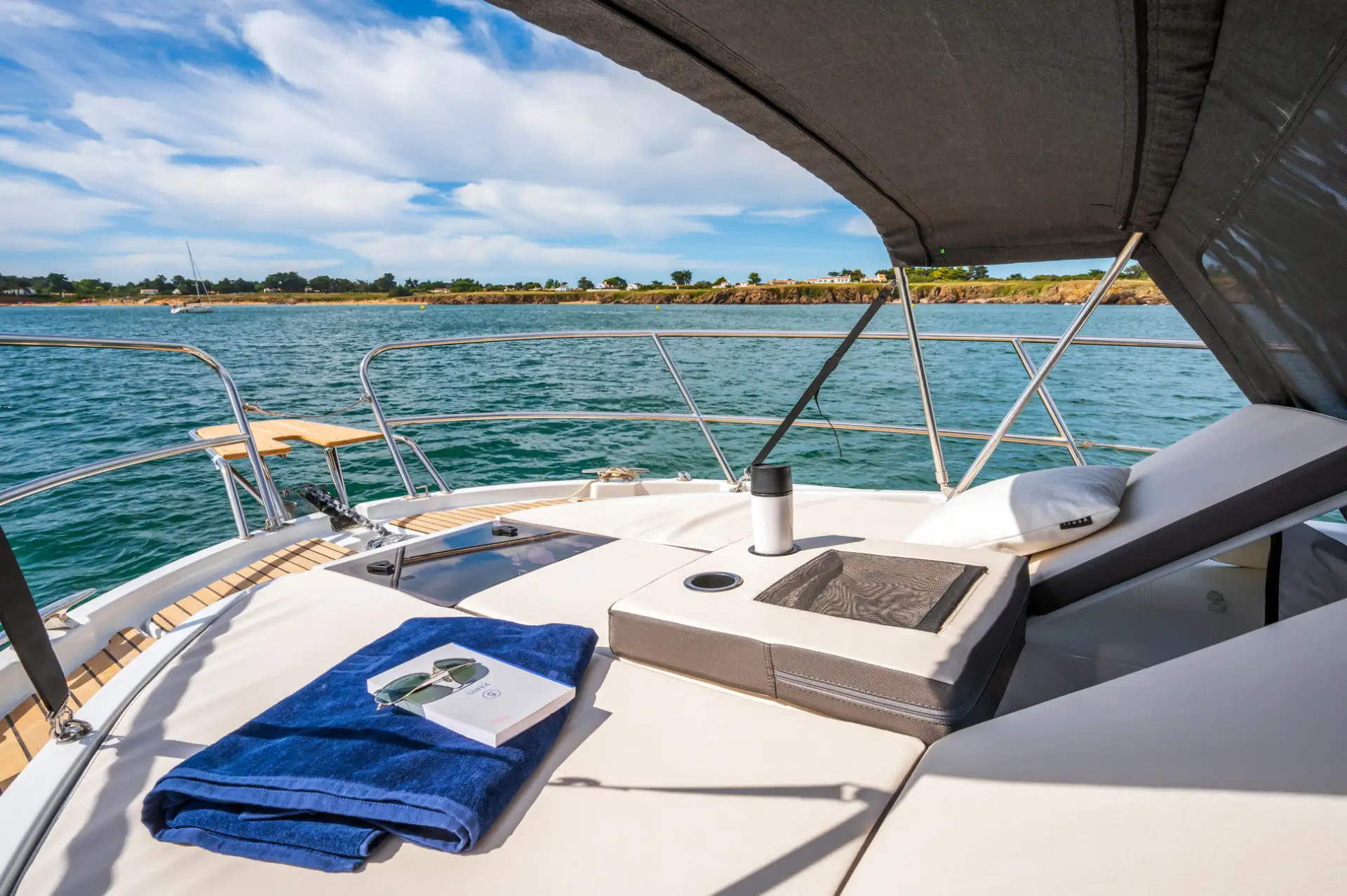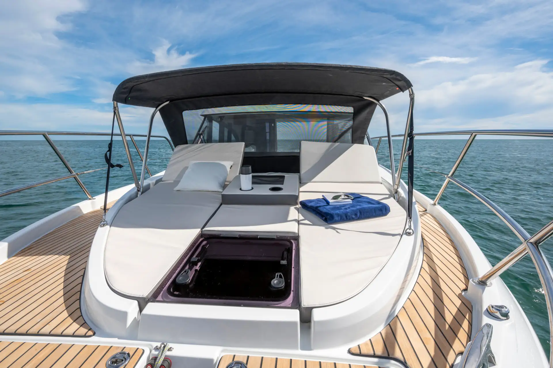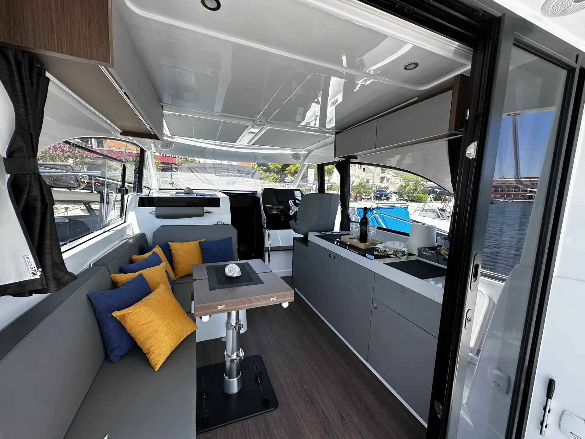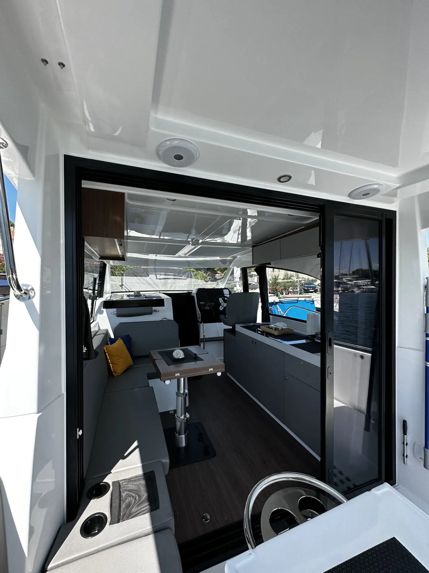 - An Deck bietet die Antares 11 ein großes Sonnendeck und eine geräumige Badeplattform. Der Cockpit-Bereich ist gut geschützt und komfortabel, ideal für gesellige Momente.