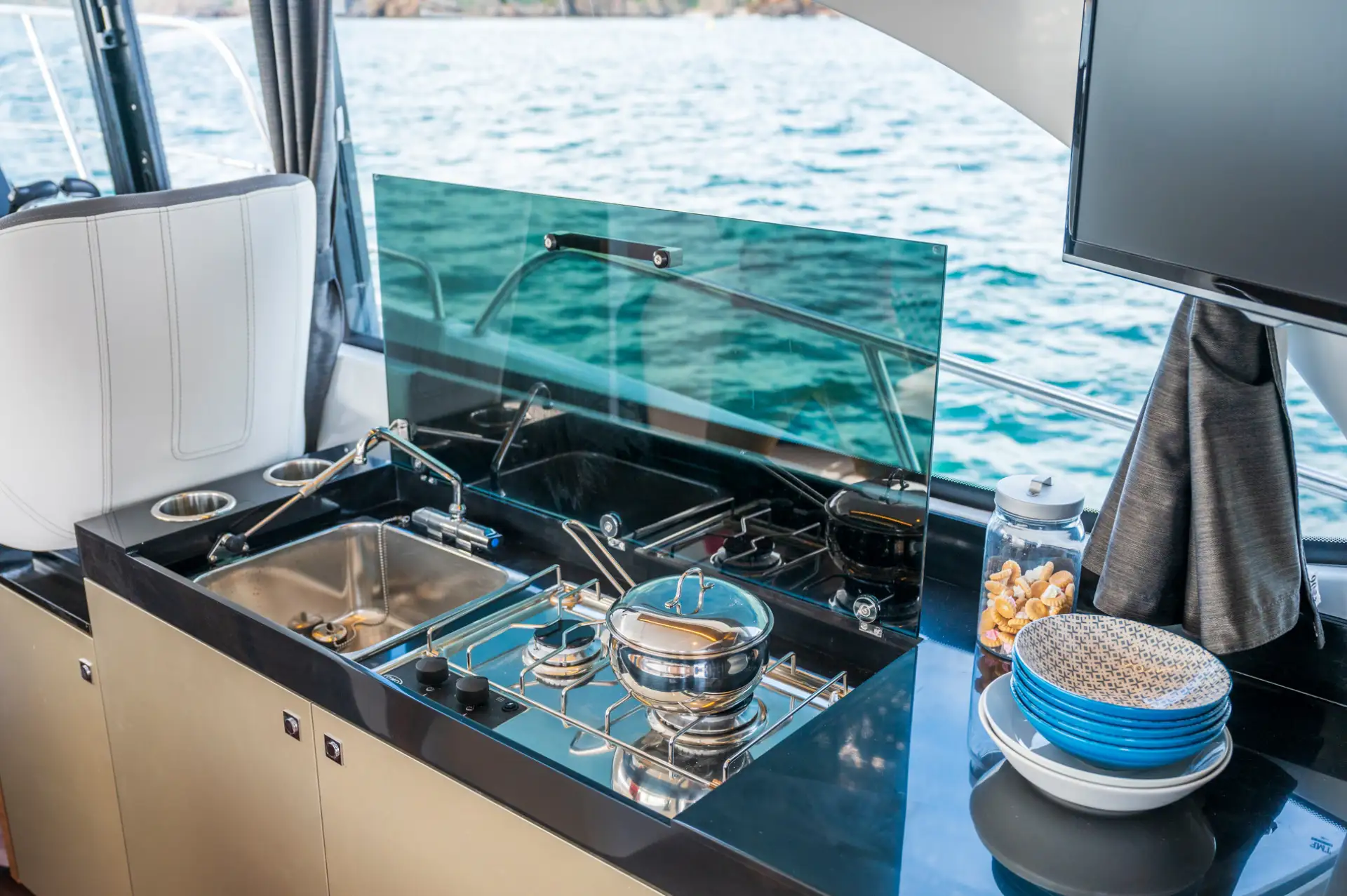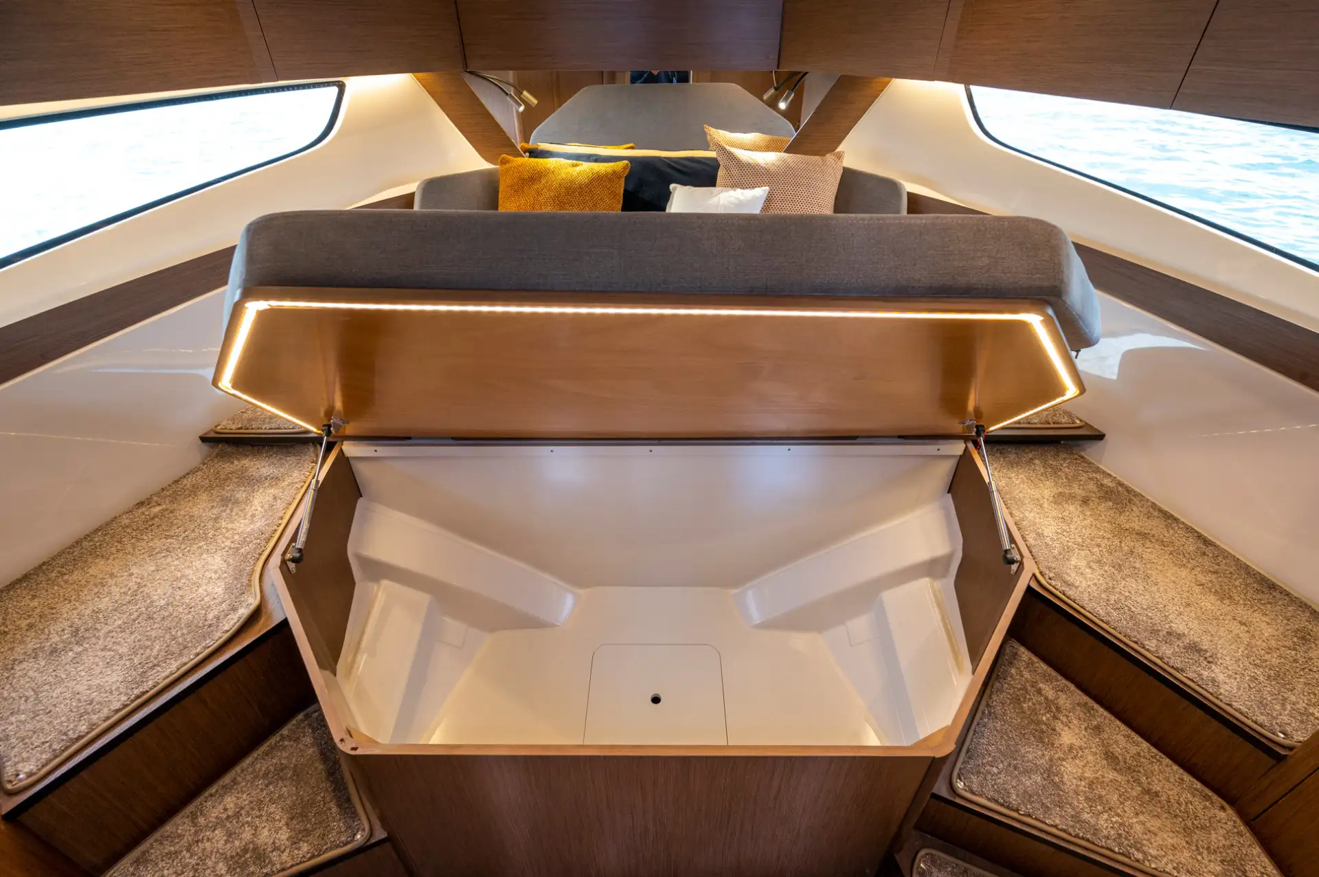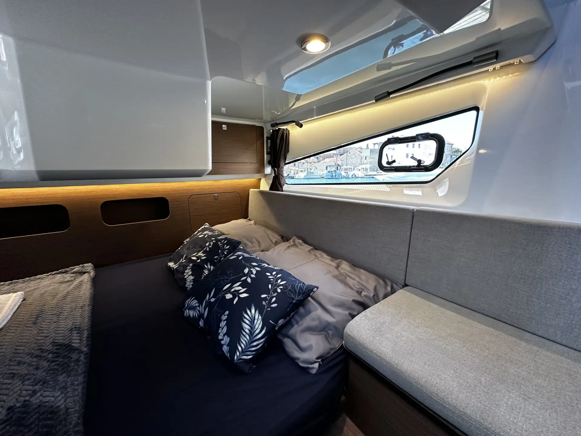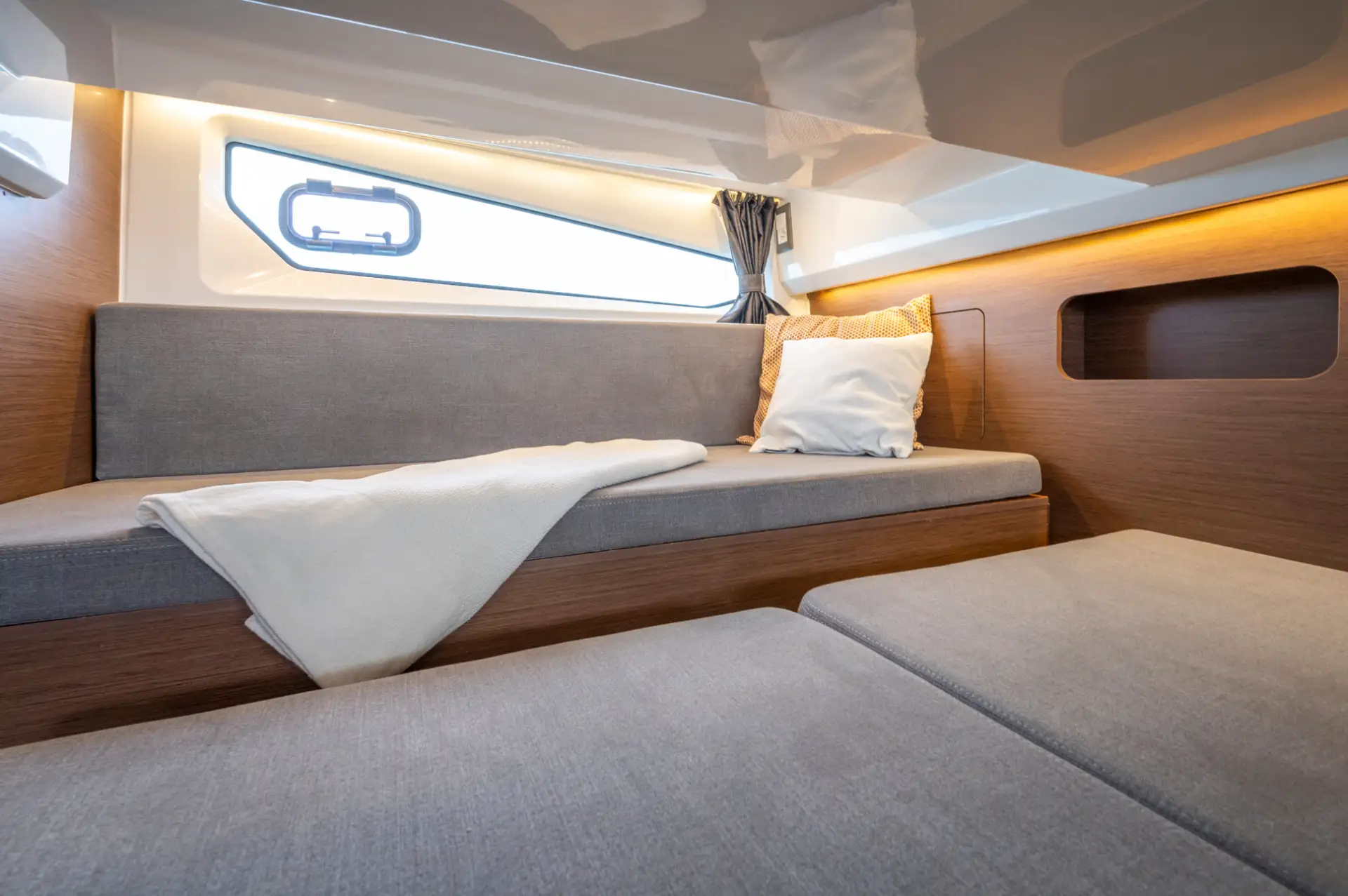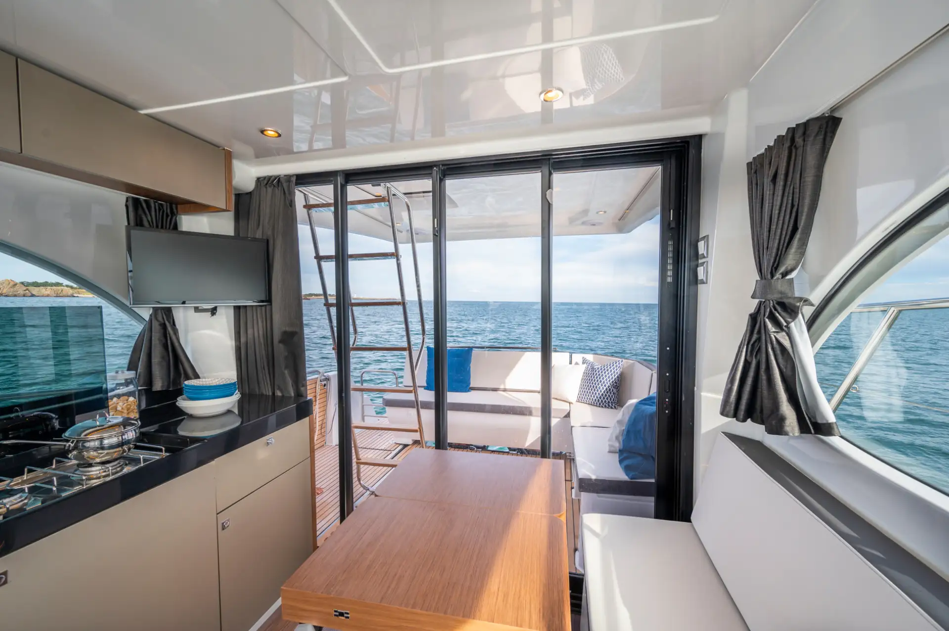 - Der Wohnbereich kann zu einer zusätzlichen Schlafstelle umgewandelt werden, sodass bis zu sieben Personen an Bord übernachten können.